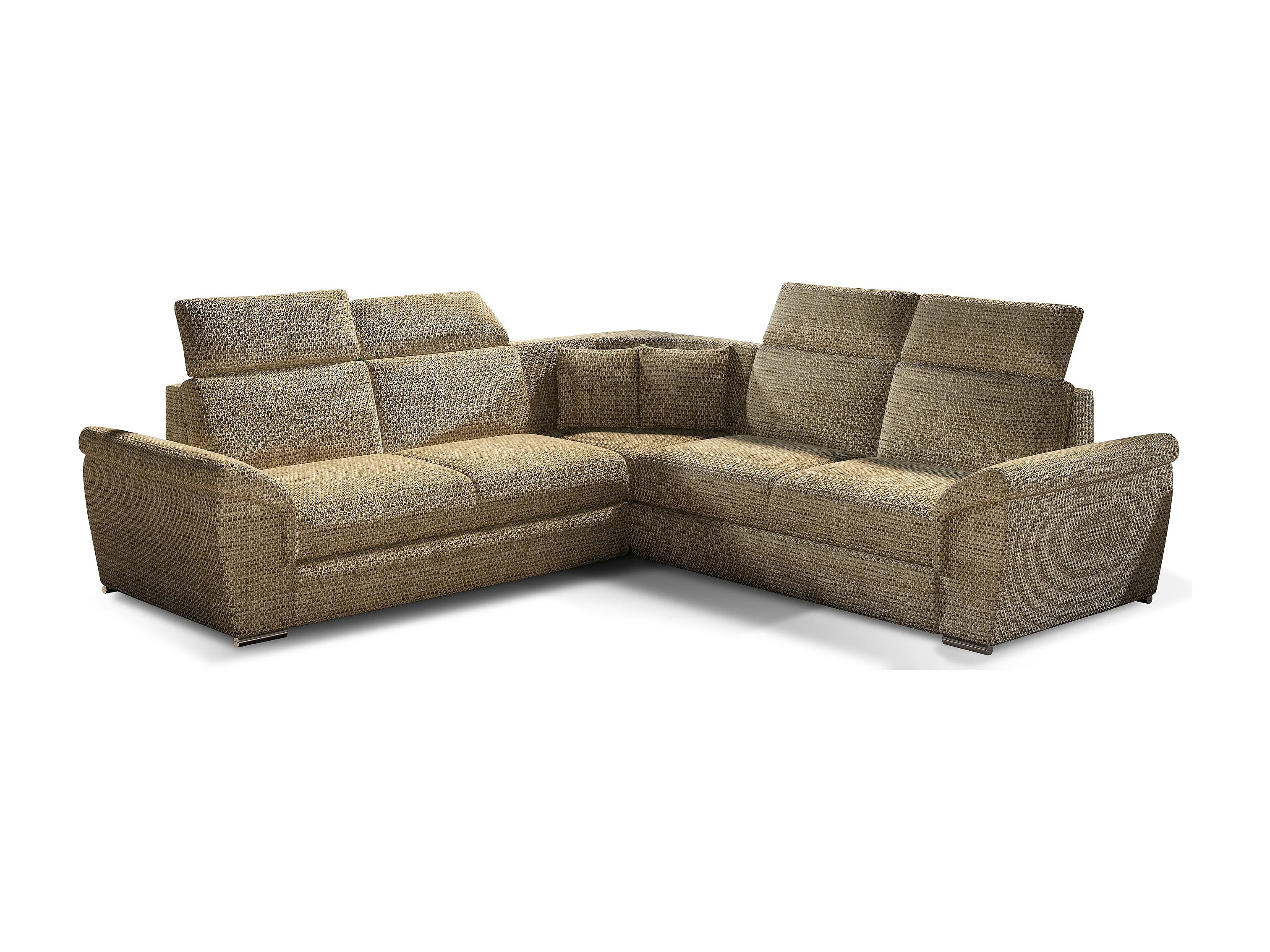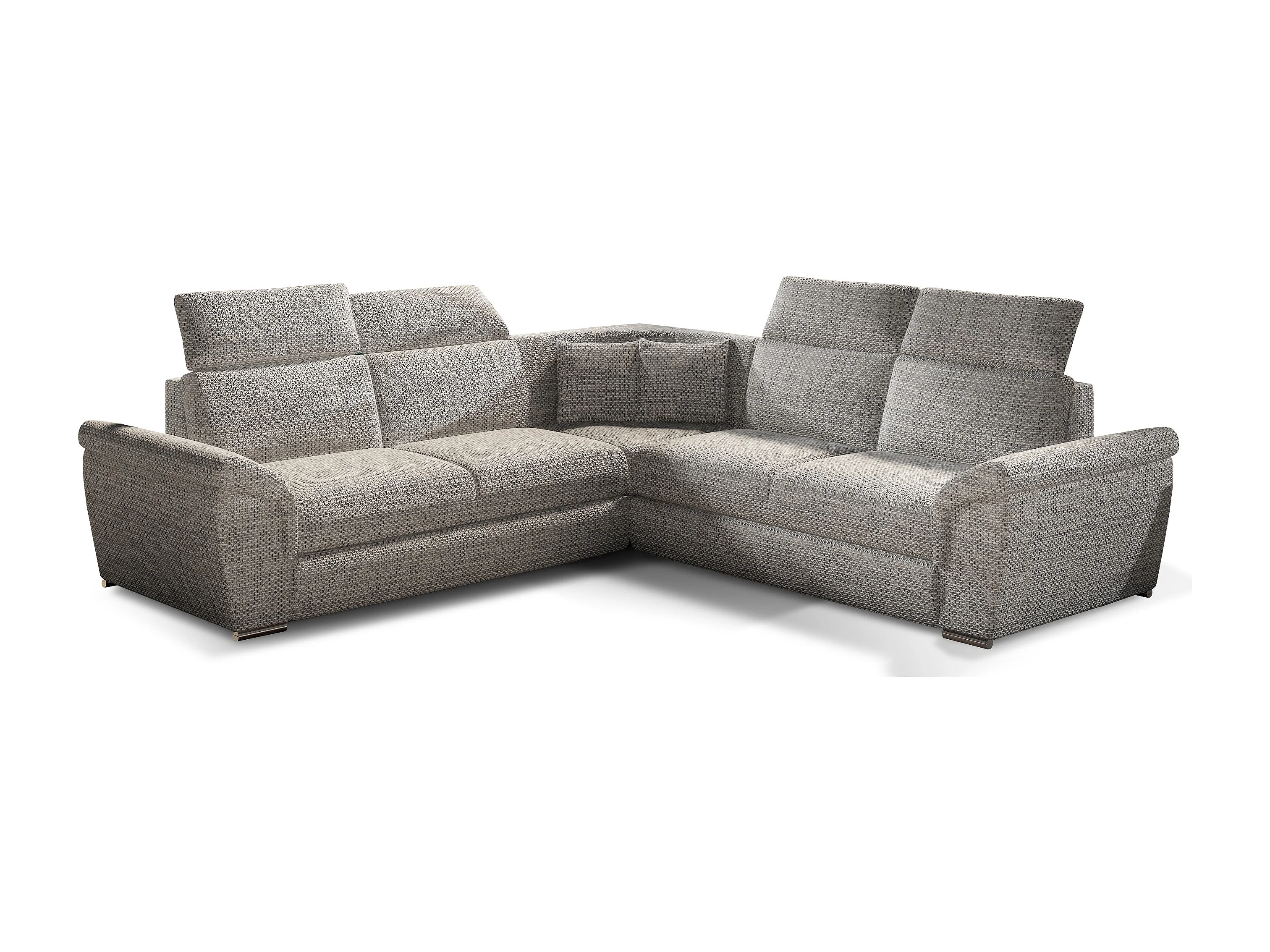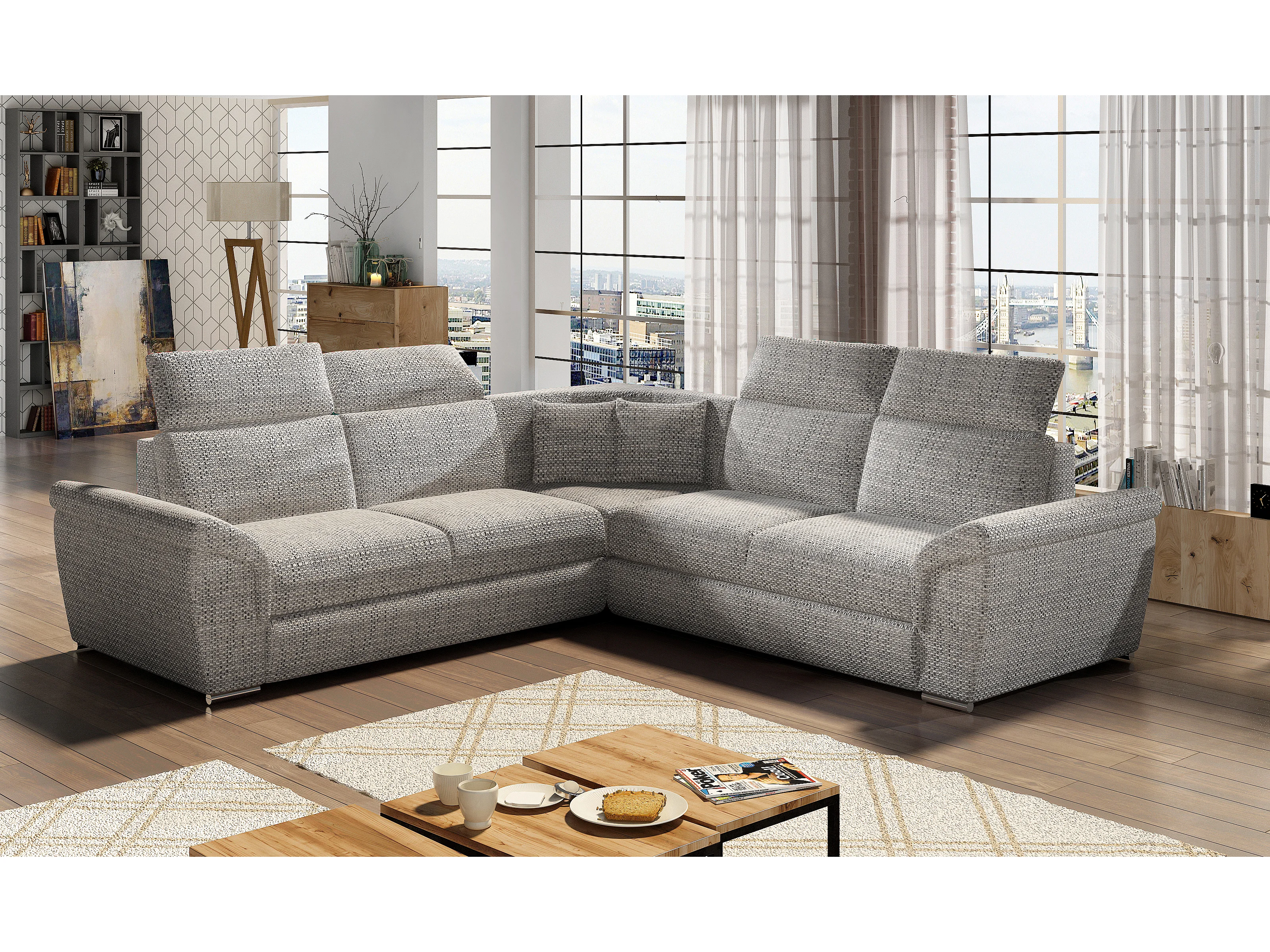 Canapé panoramique convertible LEVANO tissu - Rangement et appuie-têtes réglables-Gris clair chiné-Coffre à droite
