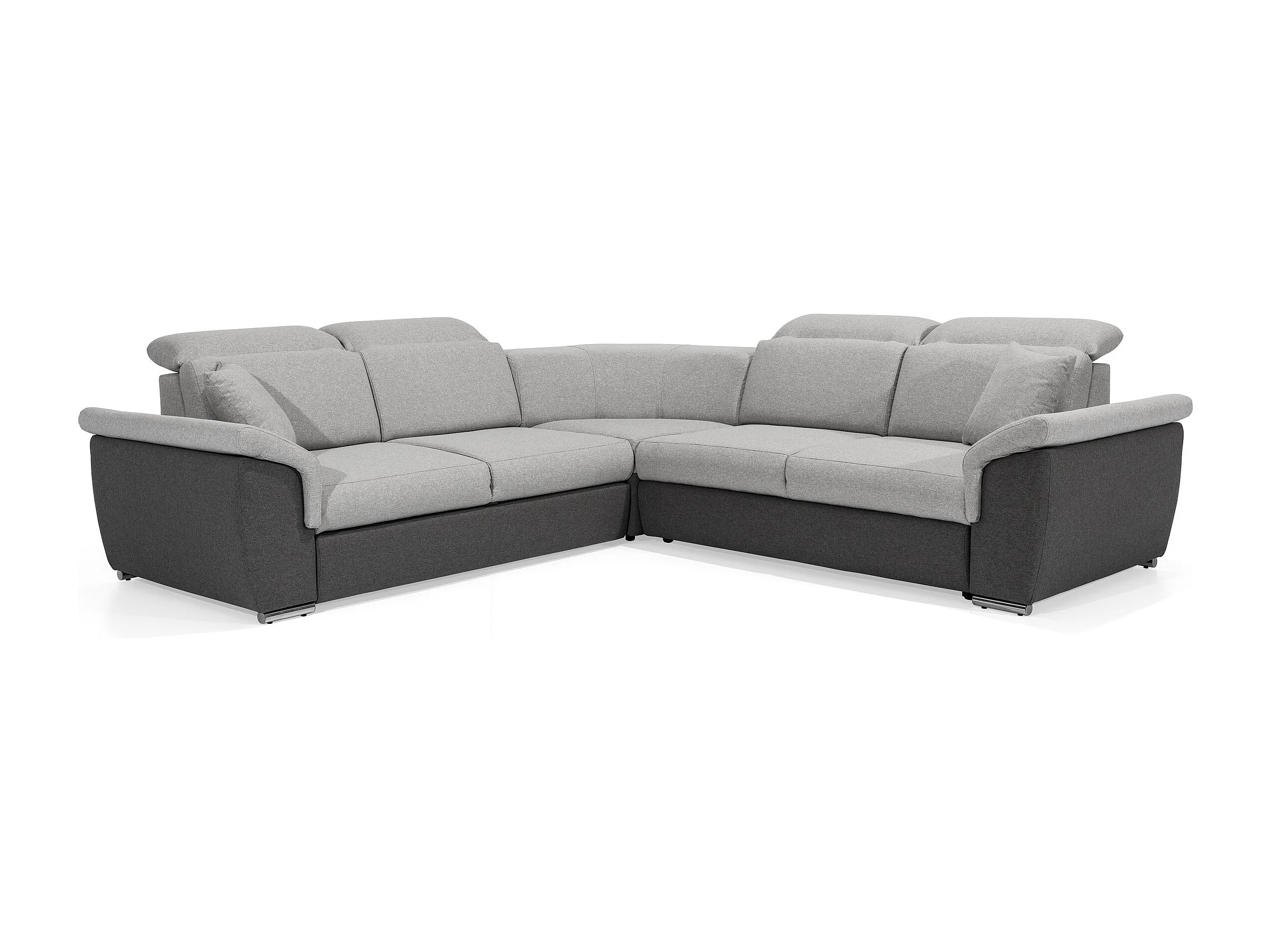 Canapé Convertible Panoramique LEVANO Tissu et Simili Cuir, Têtières-Gris/Gris chiné-Coffre à gauche