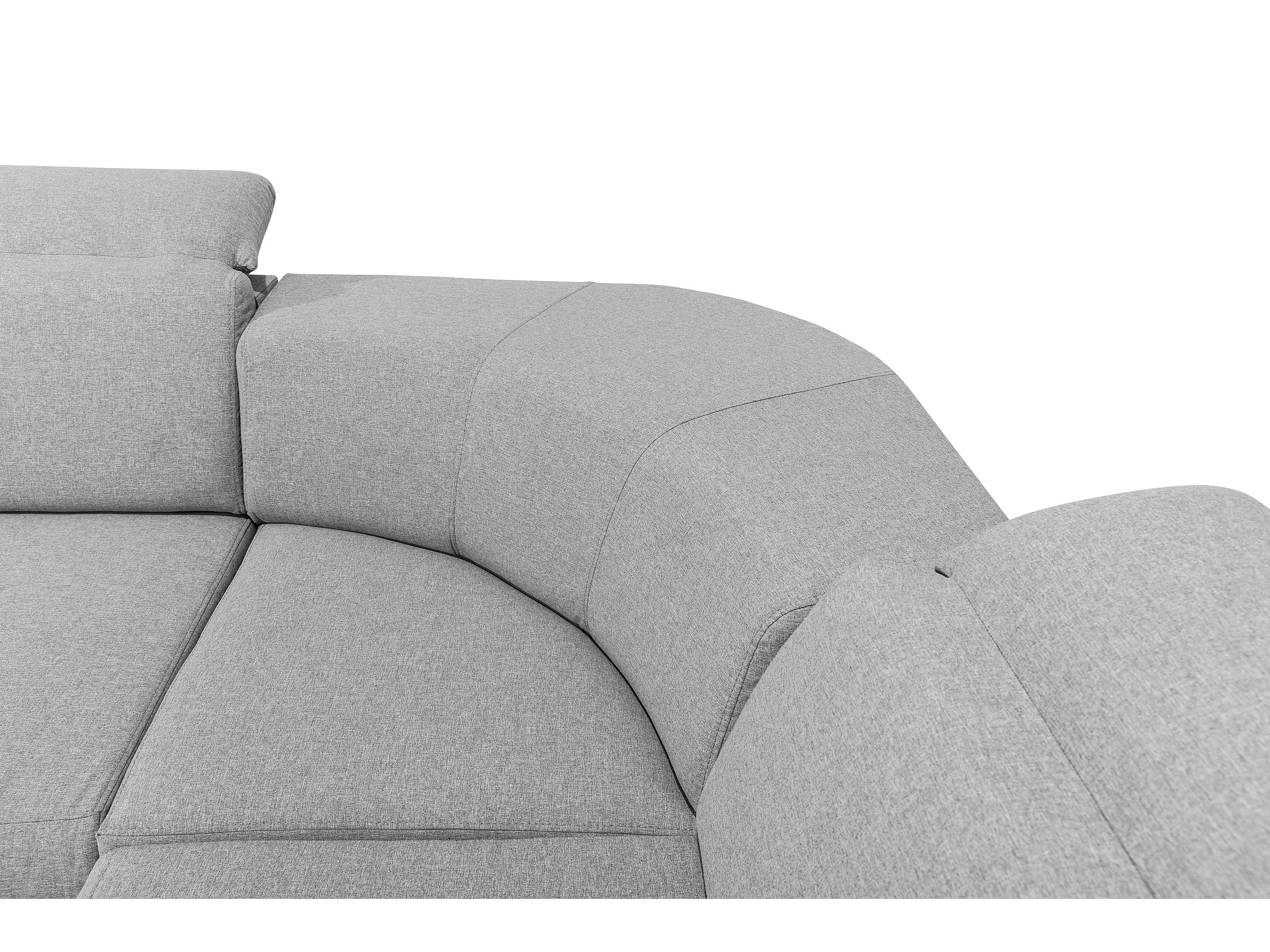 Canapé panoramique convertible LEVANO tissu - Rangement et appuie-têtes réglables-Gris clair-Coffre à gauche