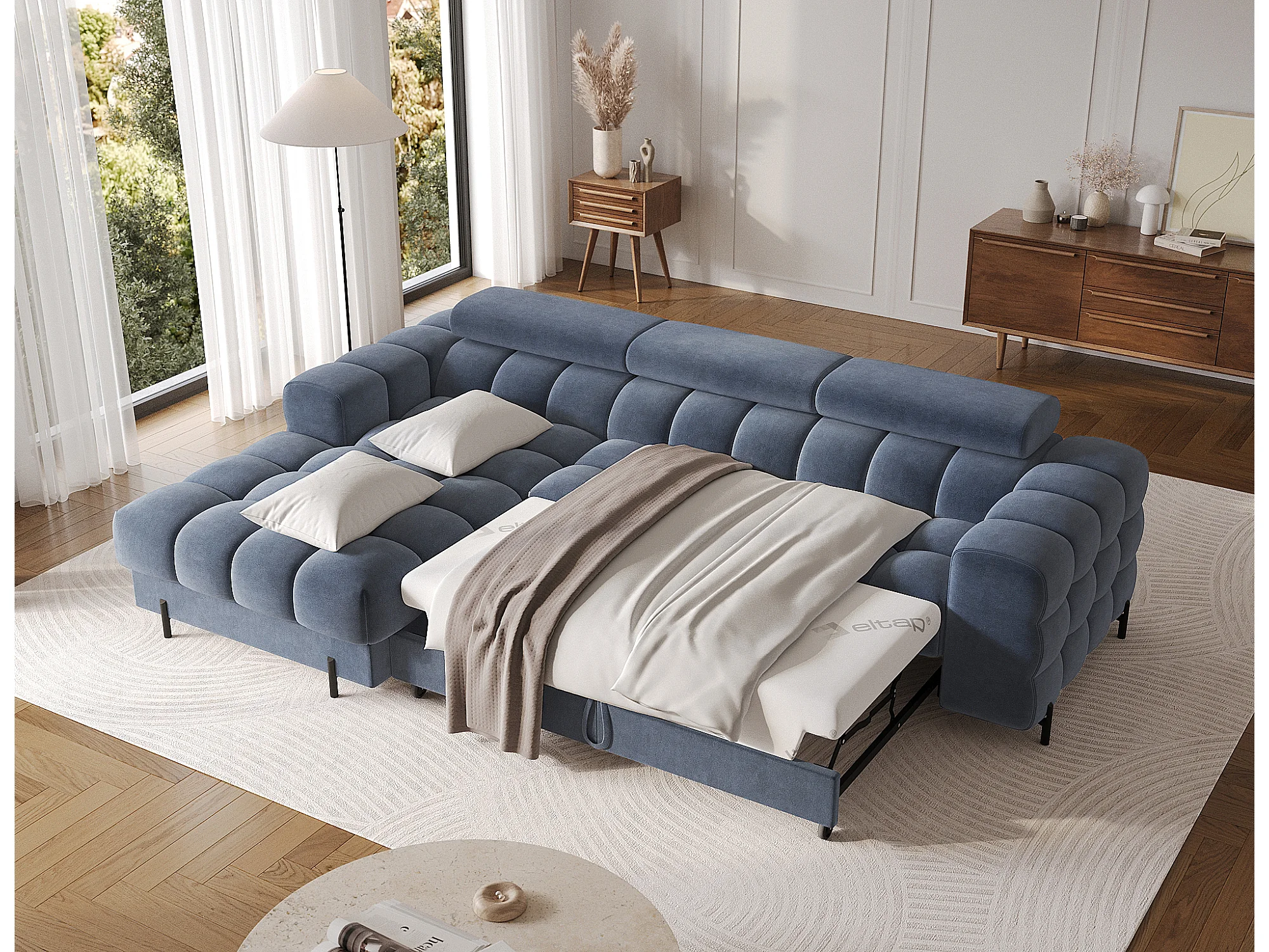 Canapé convertible 4 places bleu