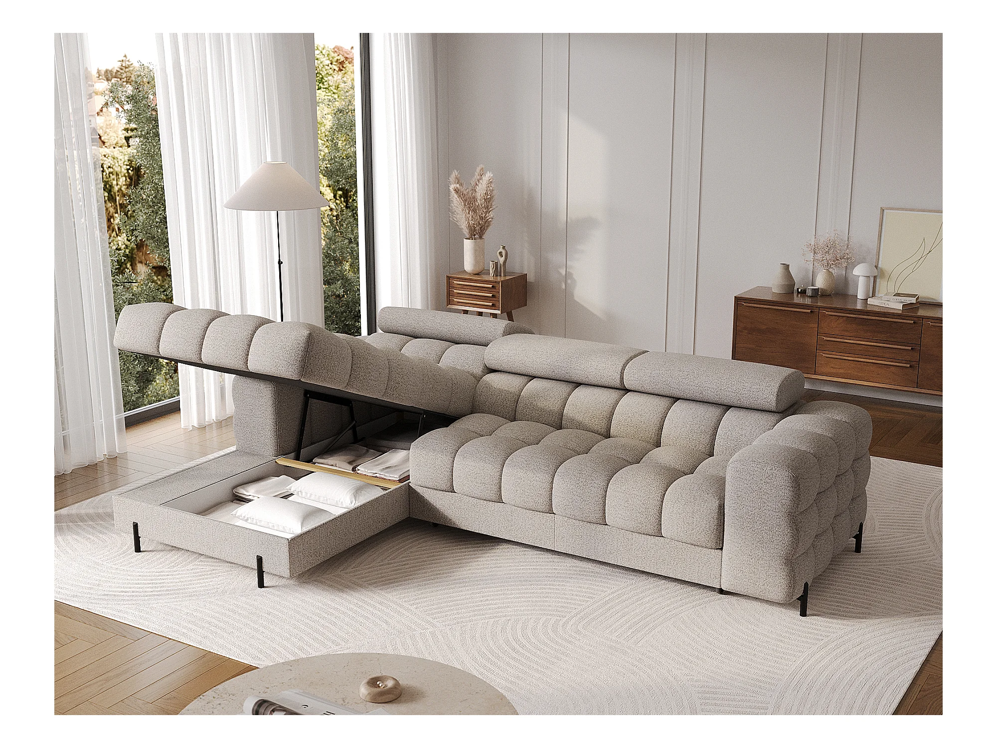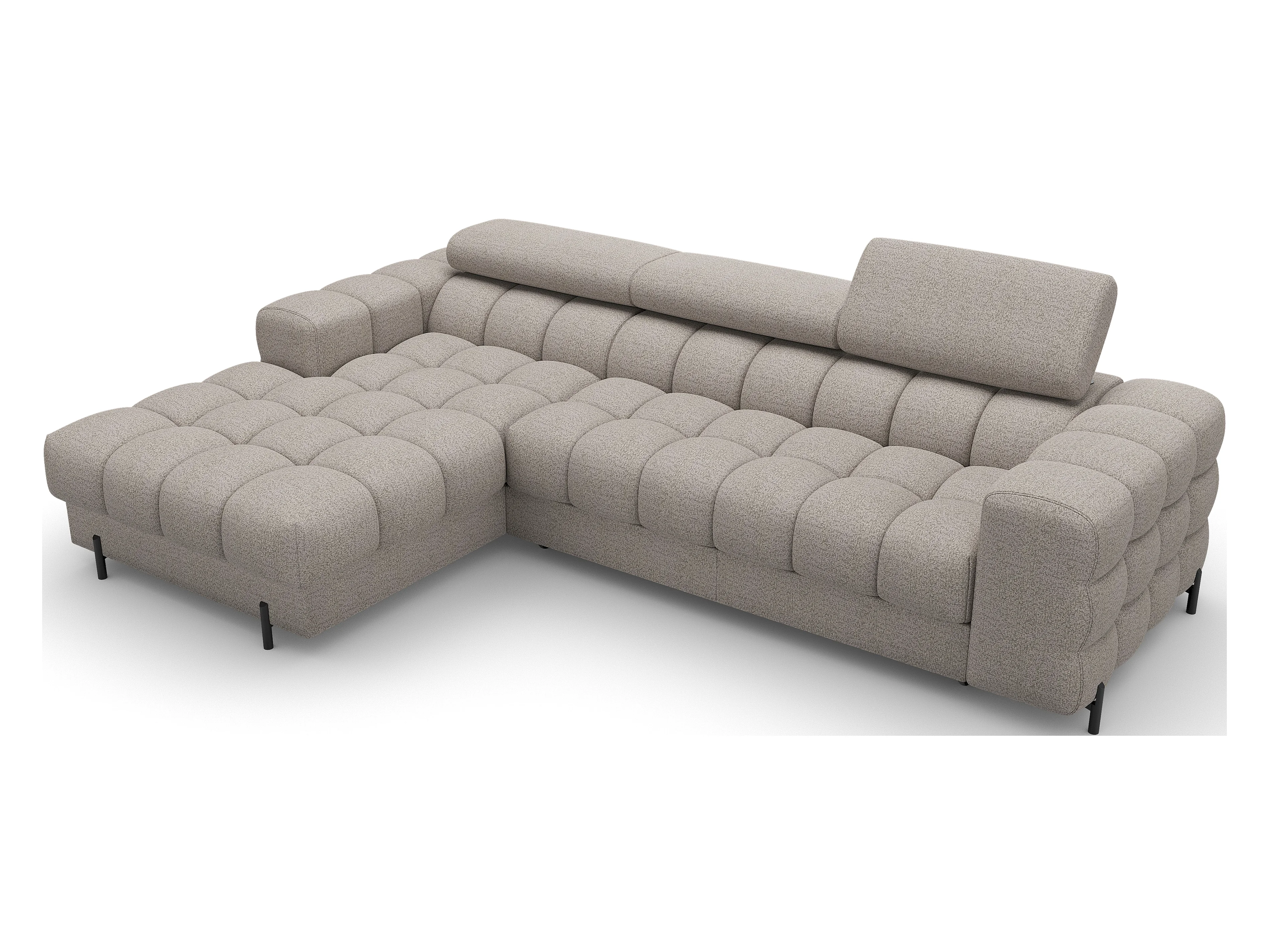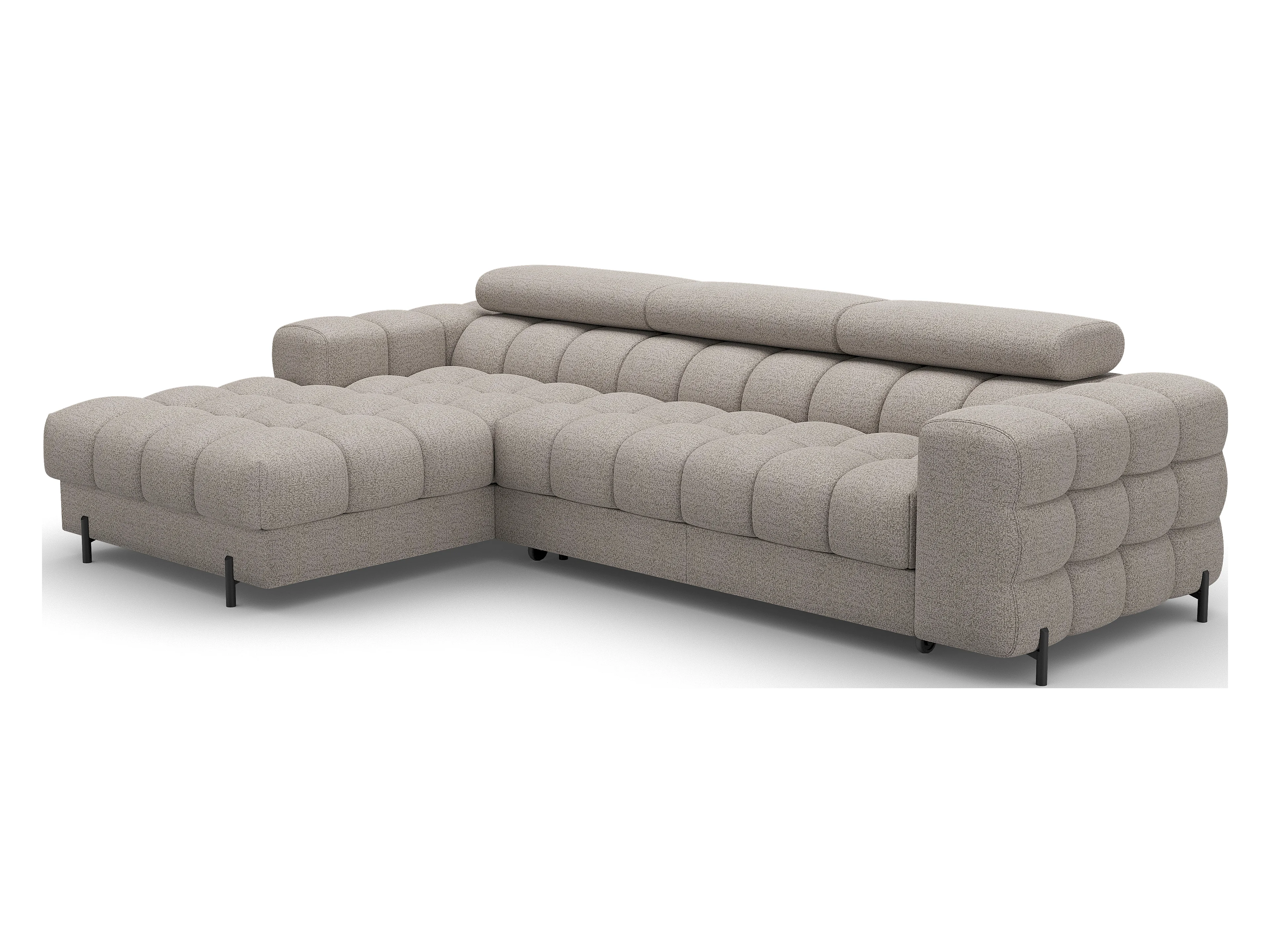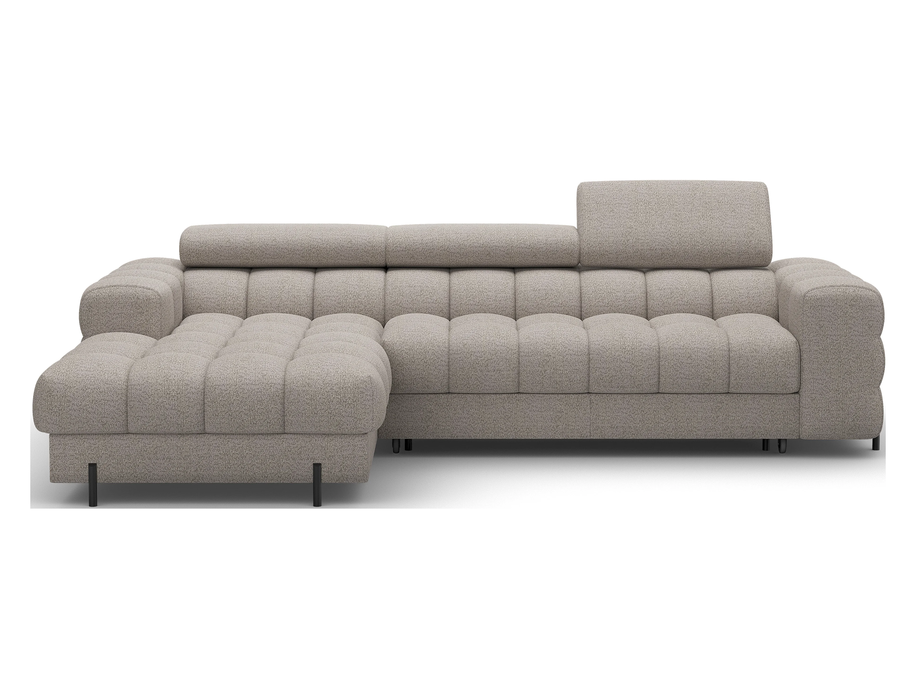 Canapé d’angle convertible tissu appuis-tête réglables KATE – Coffre et pieds métal noir-Beige-angle gauche