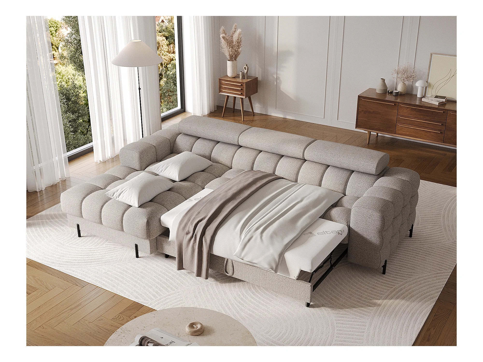 Canapé convertible 5 places beige