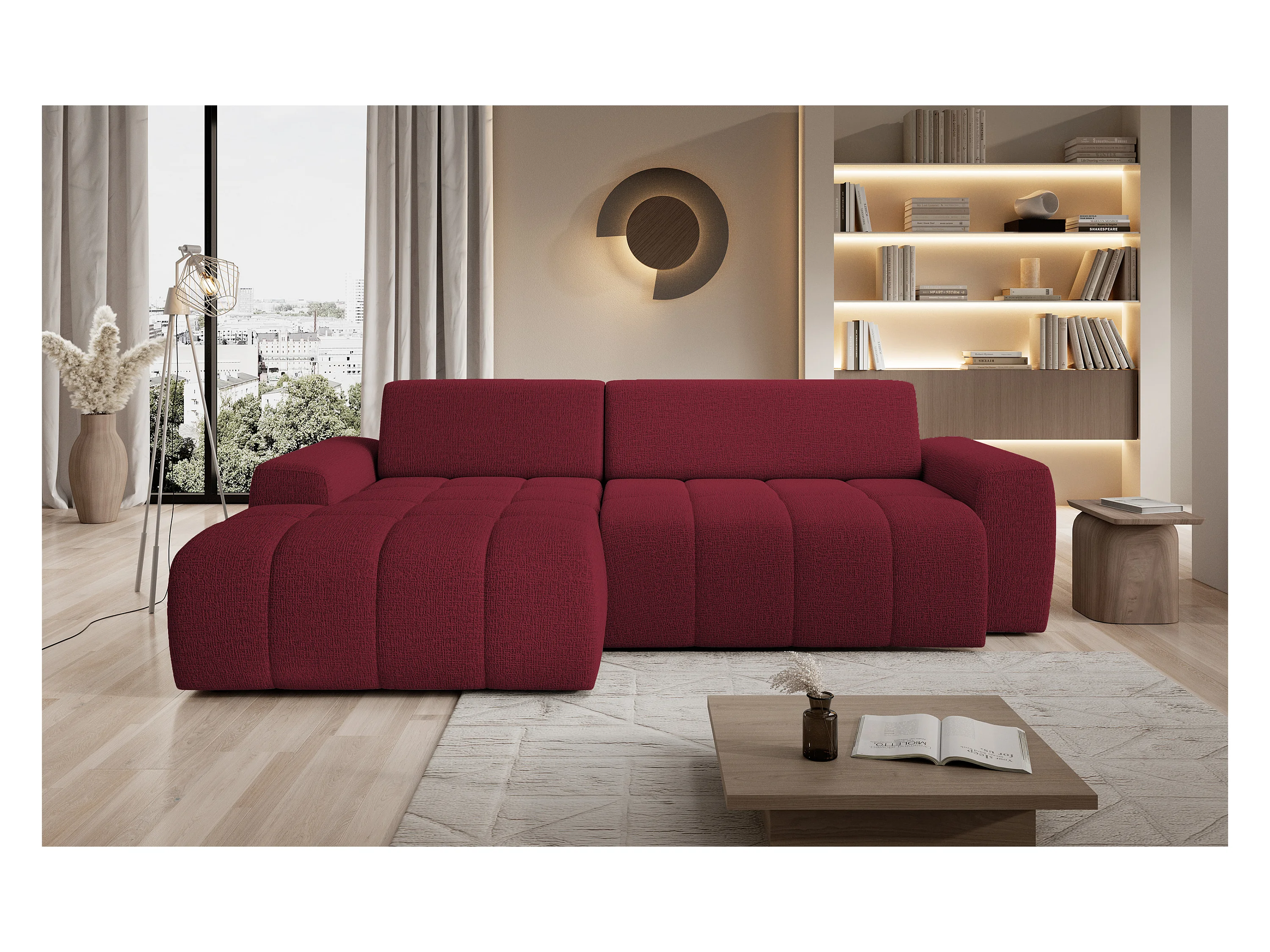 Canapé d'angle Savio indépendant, tissu Kansas résistant, dim. 265x172x81cm, couchage 206x92cm, côté gauche, cerisier
