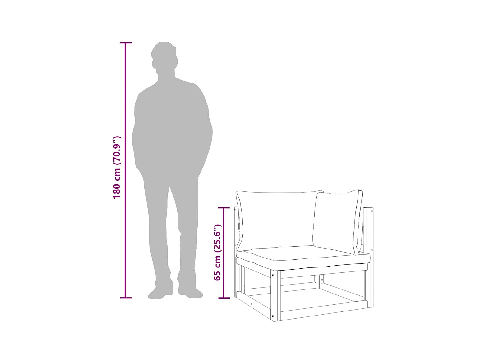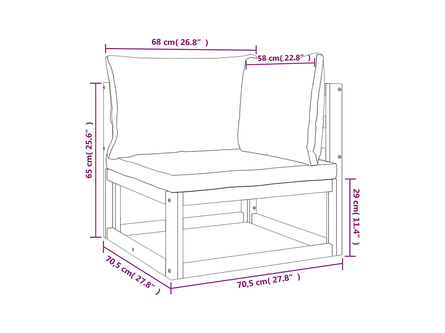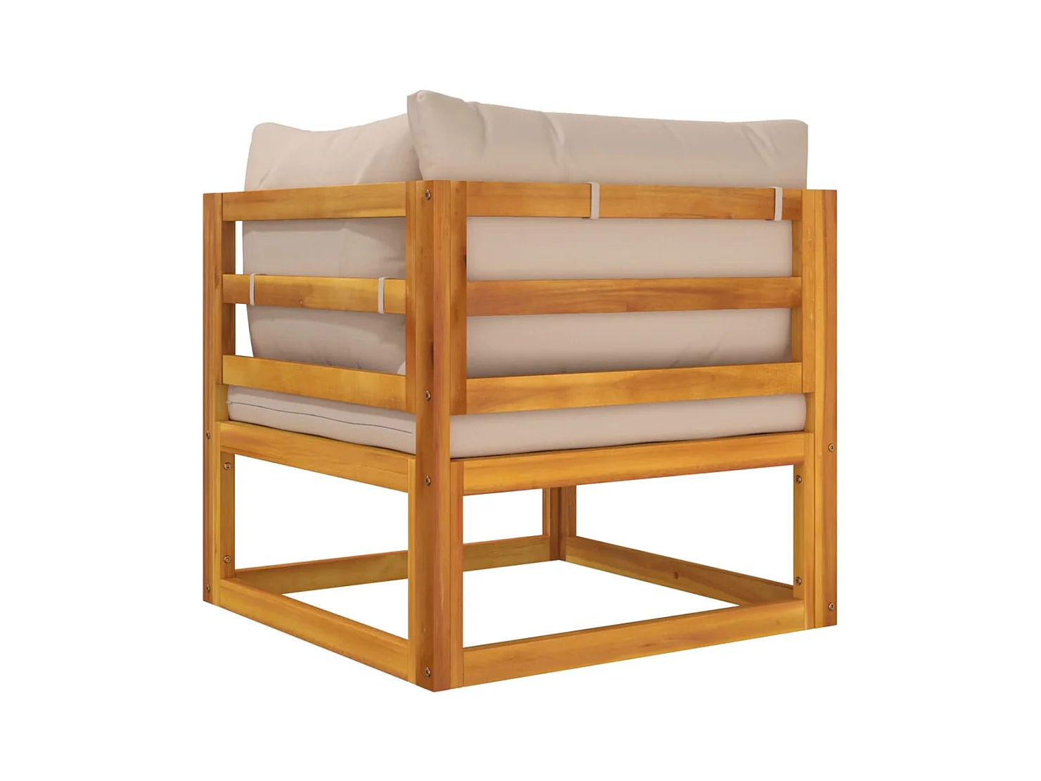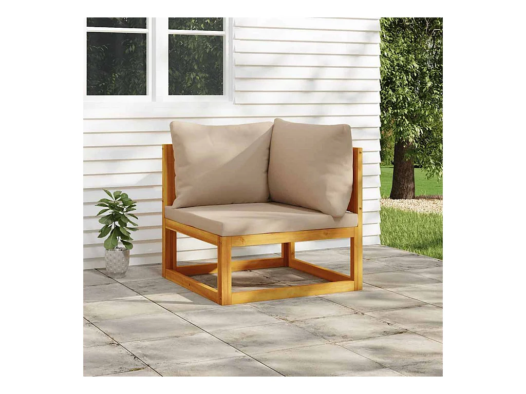 Canapé central de jardin et coussins taupe bois massif d'acacia