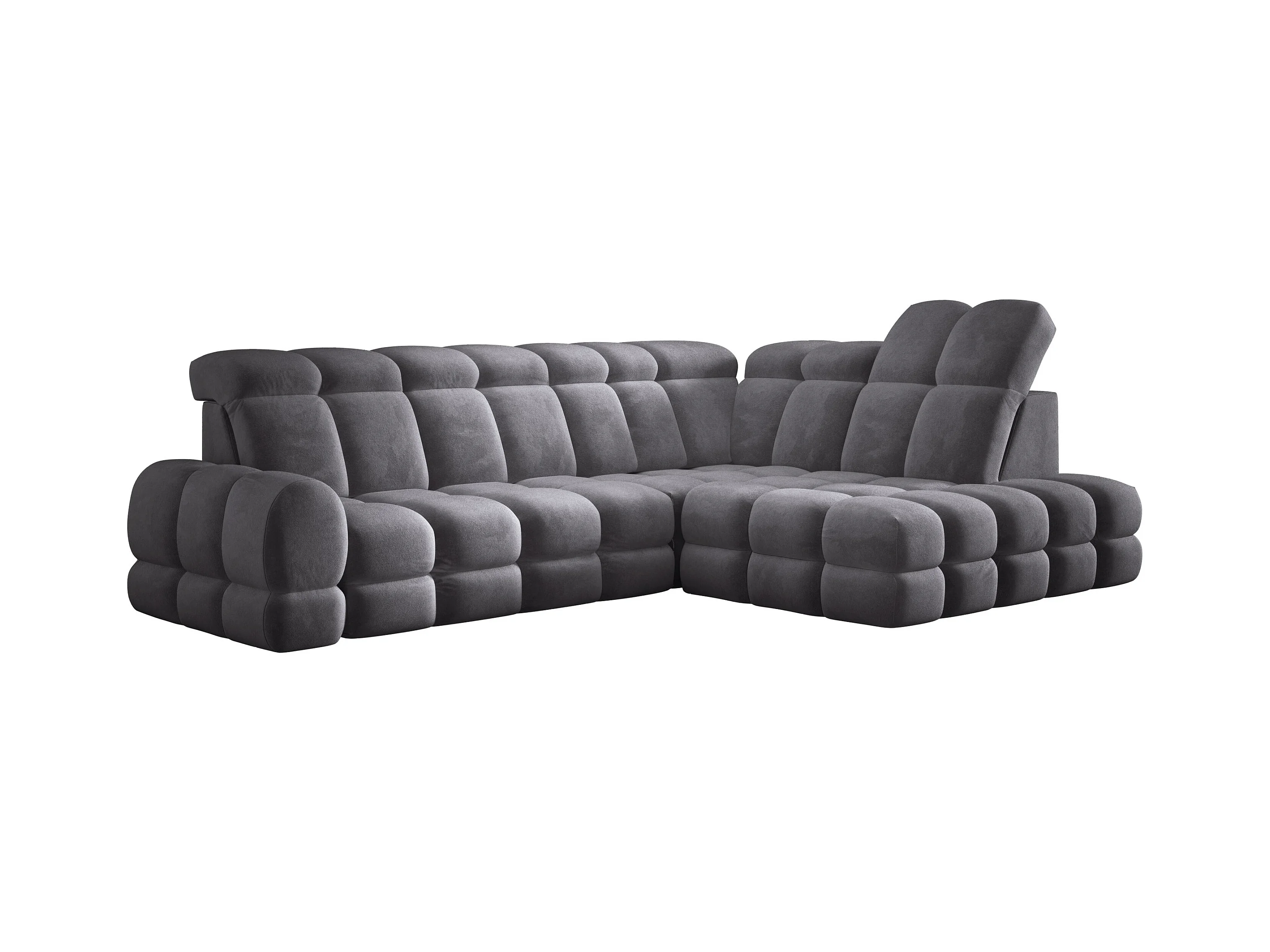 Canapé d'angle Tollo Graphite tissu Anthology côté gauche 302x217x105 cm, forme L, convertible, coffre 120x85x17 cm, réglable électriquement
