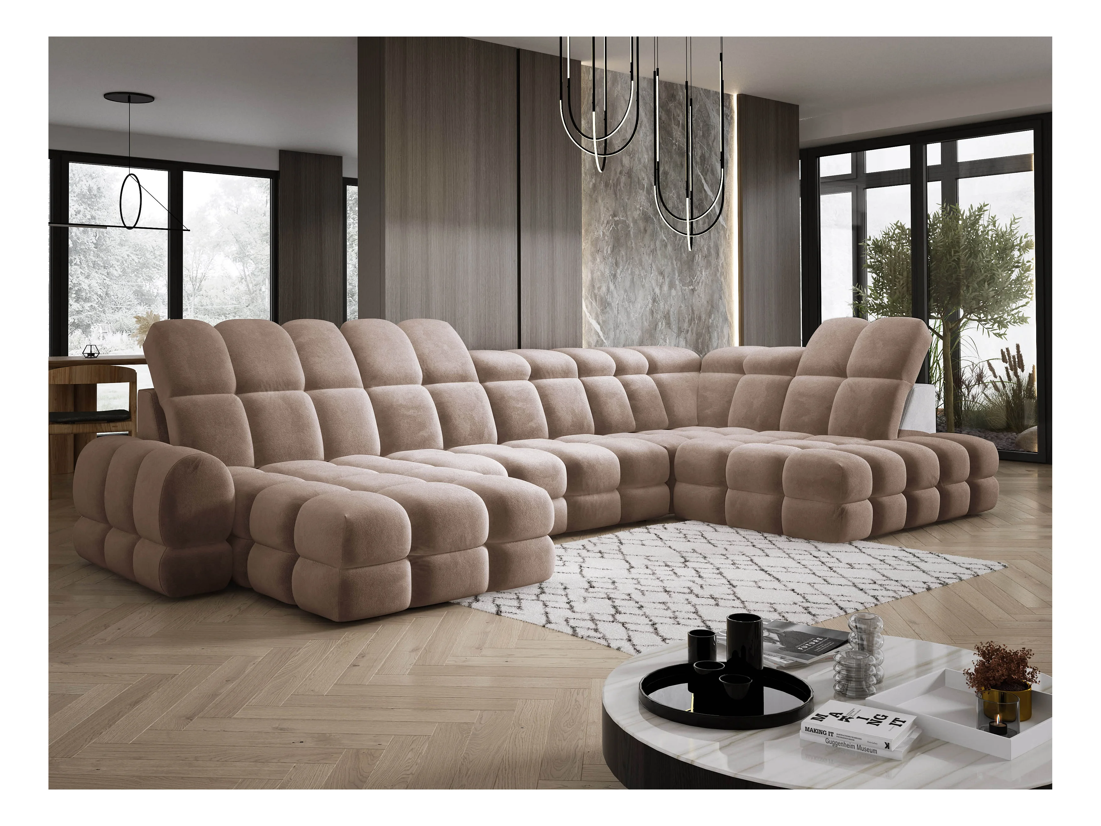 Canapé d’Angle Tollo Sable Tissu Anthology Côté Droit 400x217x105 cm, Forme U, Convertible, Coffre 120x85x17 cm, Réglable Électrique