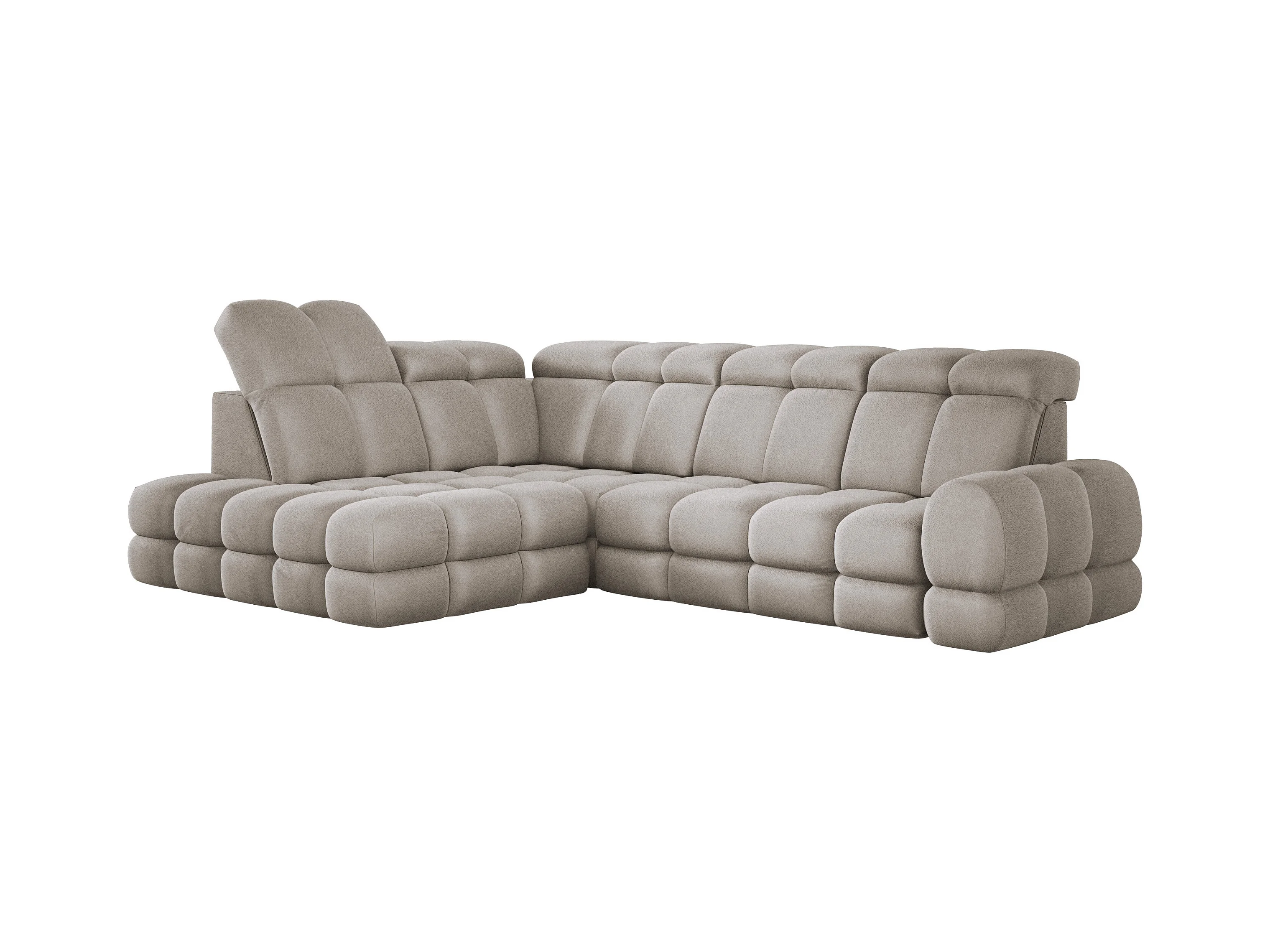 BAGGIO canapé angle 280x196cm, couchage, coffre, assise réglable, têtières, tissu Letto, gauche, Beige