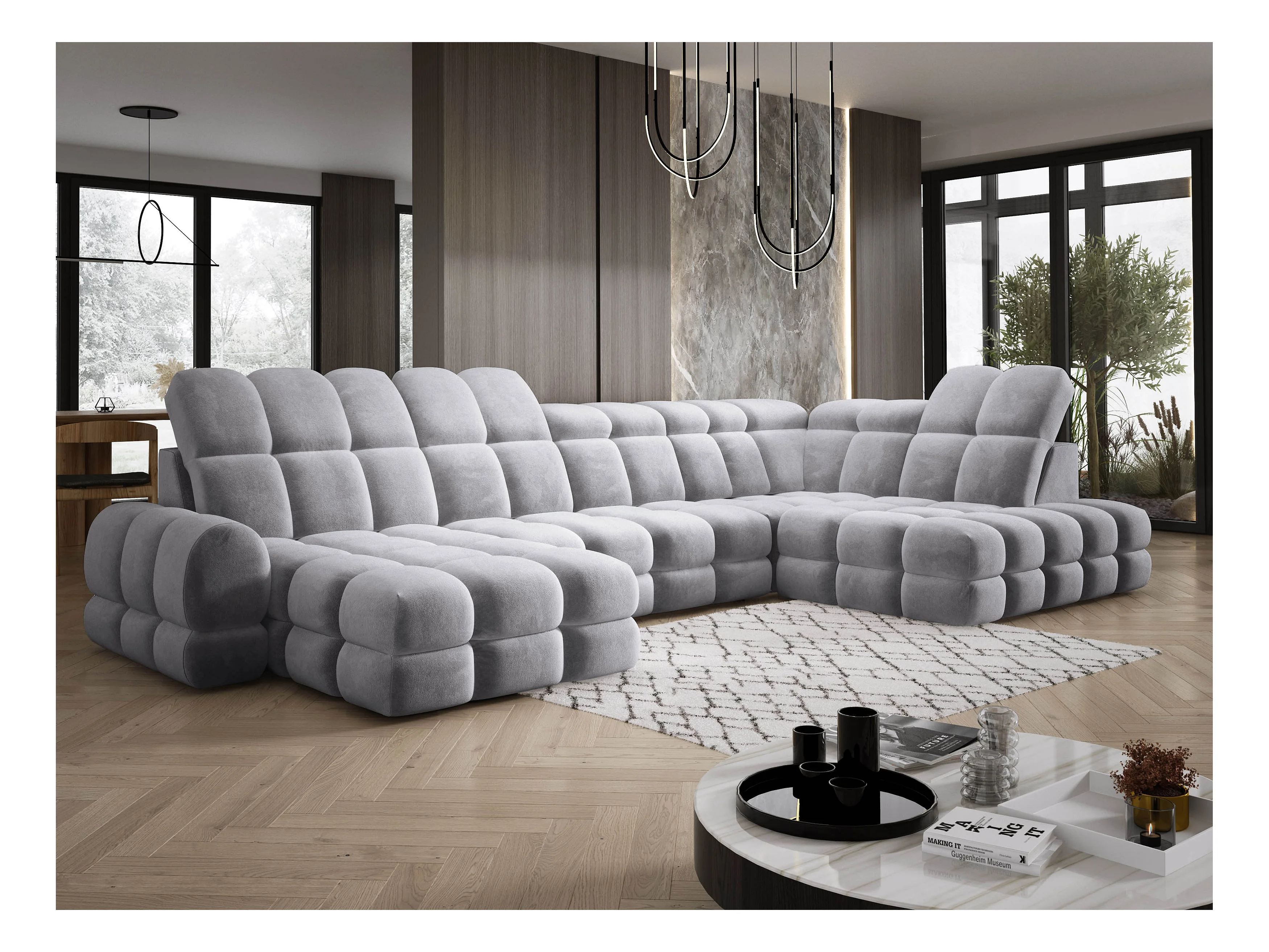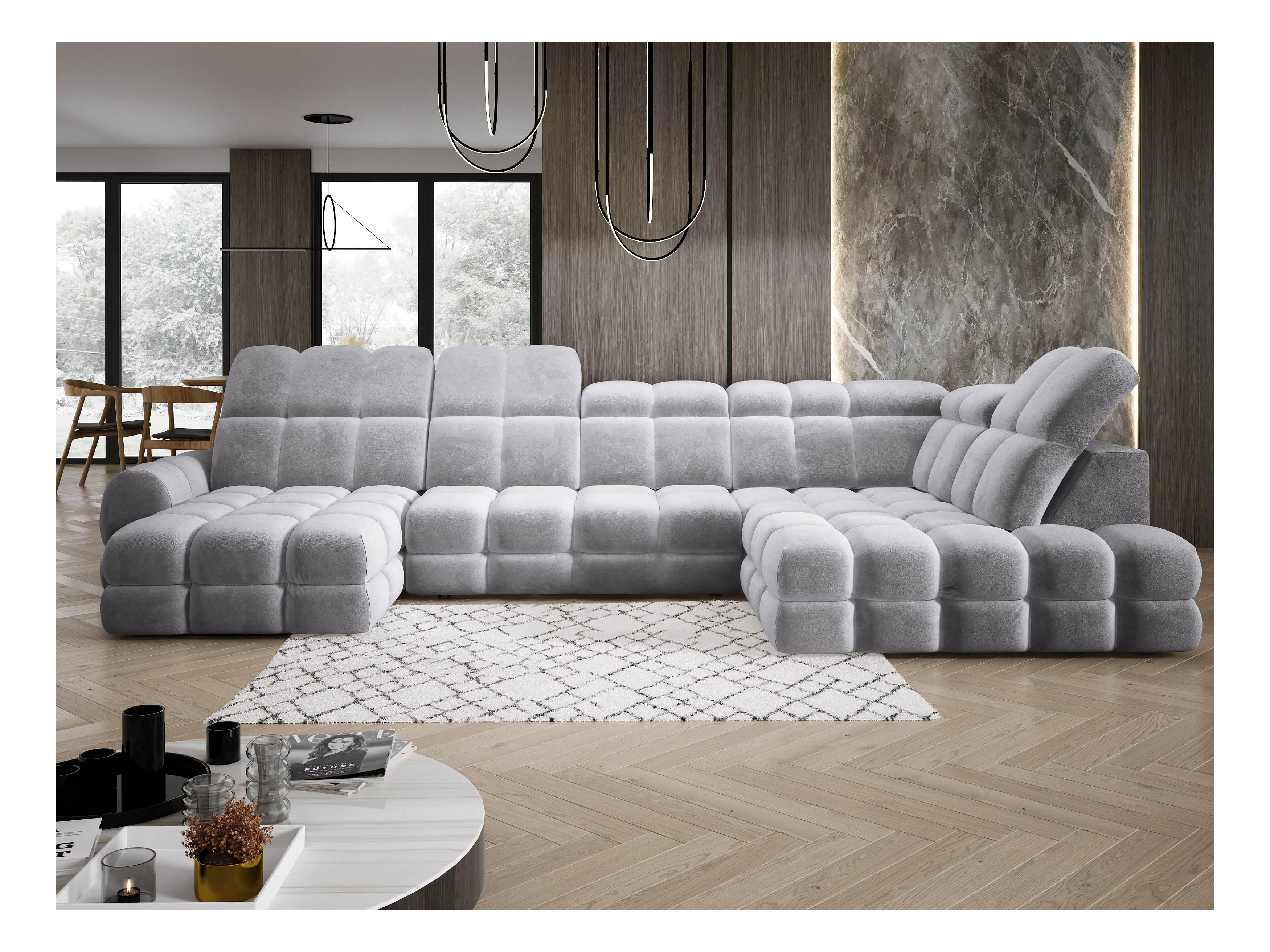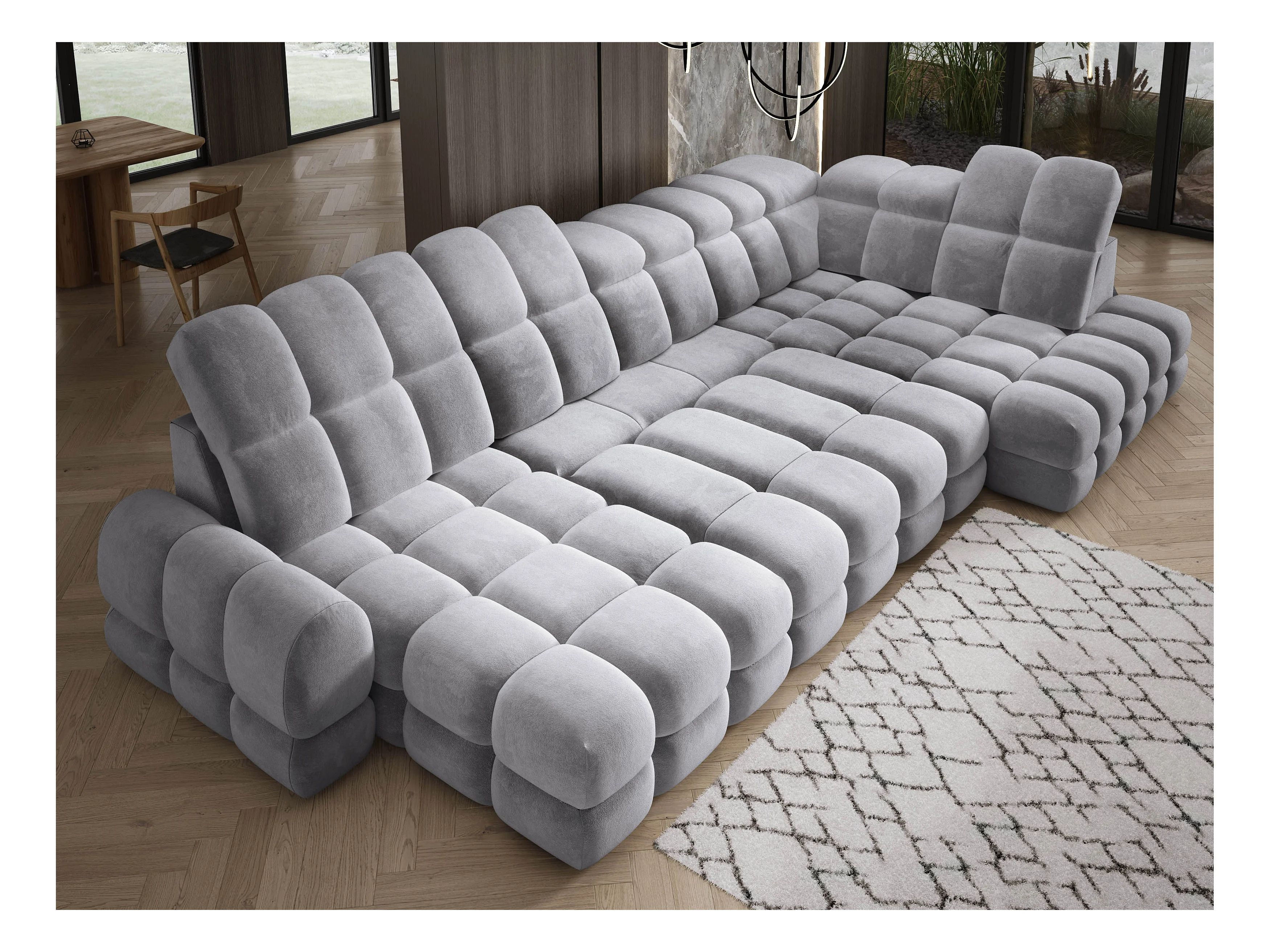 Canapé d’angle Tollo Gris tissu Salvador côté droit 400x217x105 cm, U-Form avec couchage, coffre 120x85x17 cm, réglable électriquement