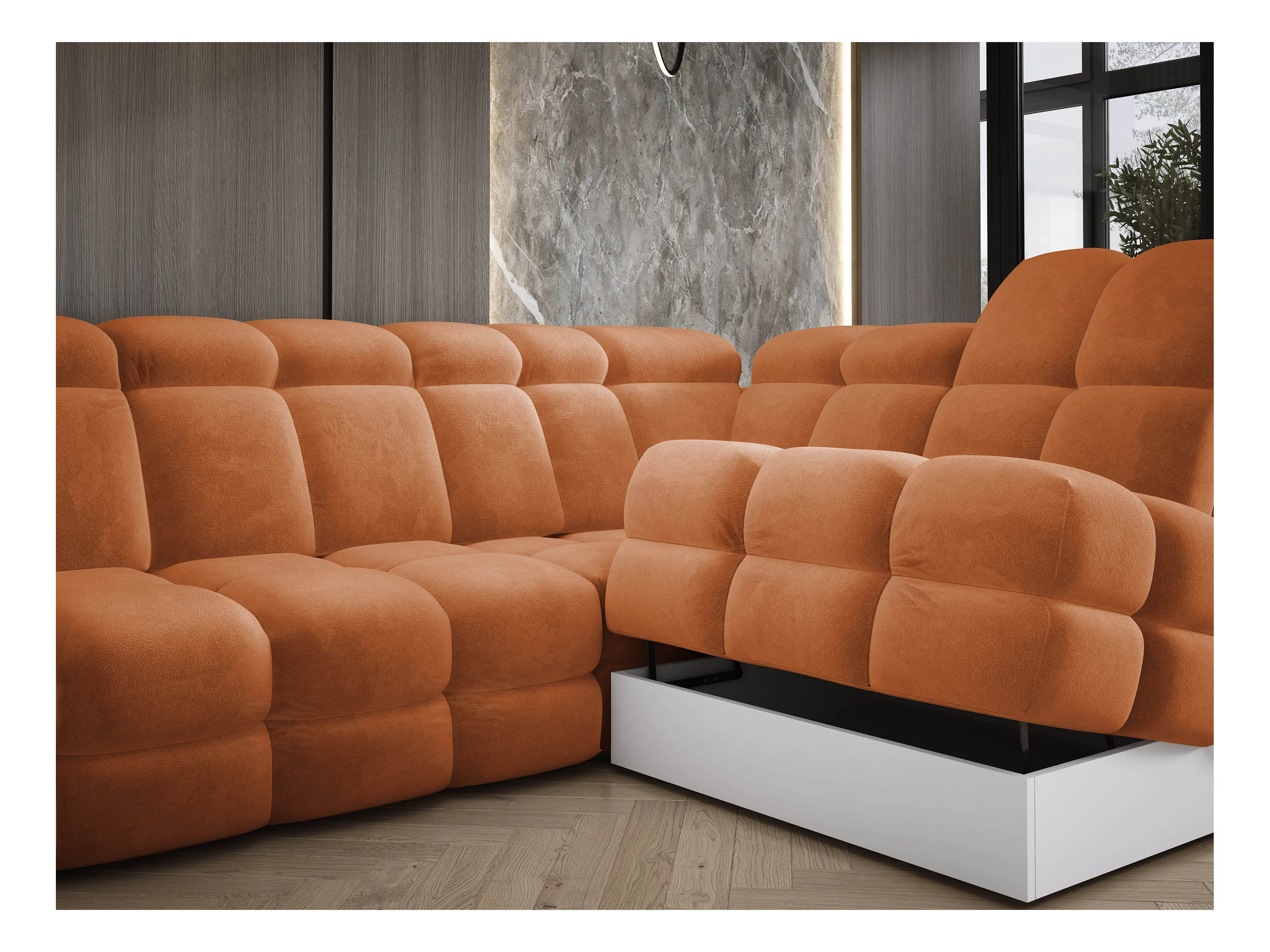 Canapé d’angle BOULI 4 places Raven, couchage 130x210cm, coffre, 264x162x82cm, gauche orange