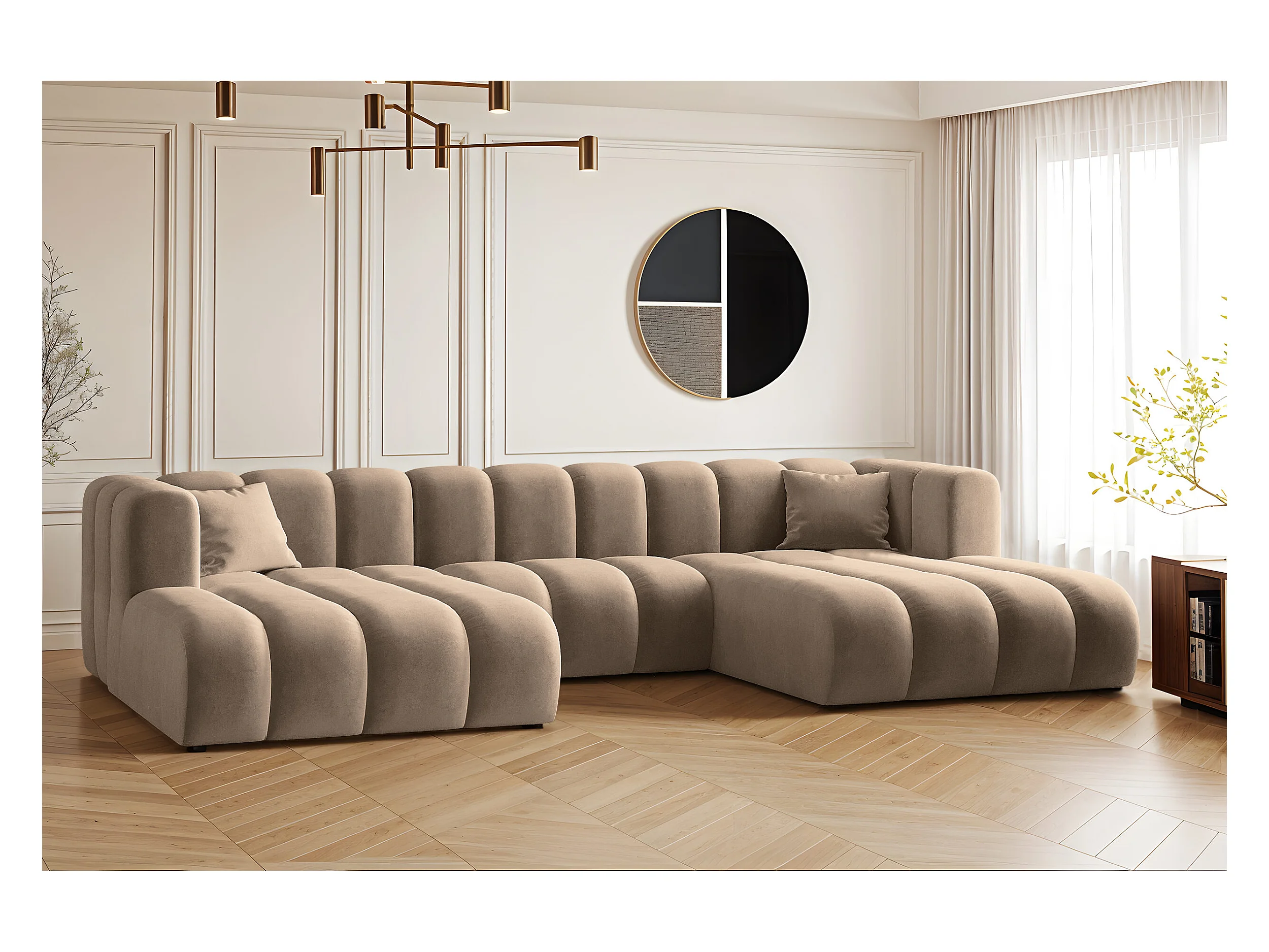 Canapé d'angle DANI en U Tissu élégant Poso beige foncé