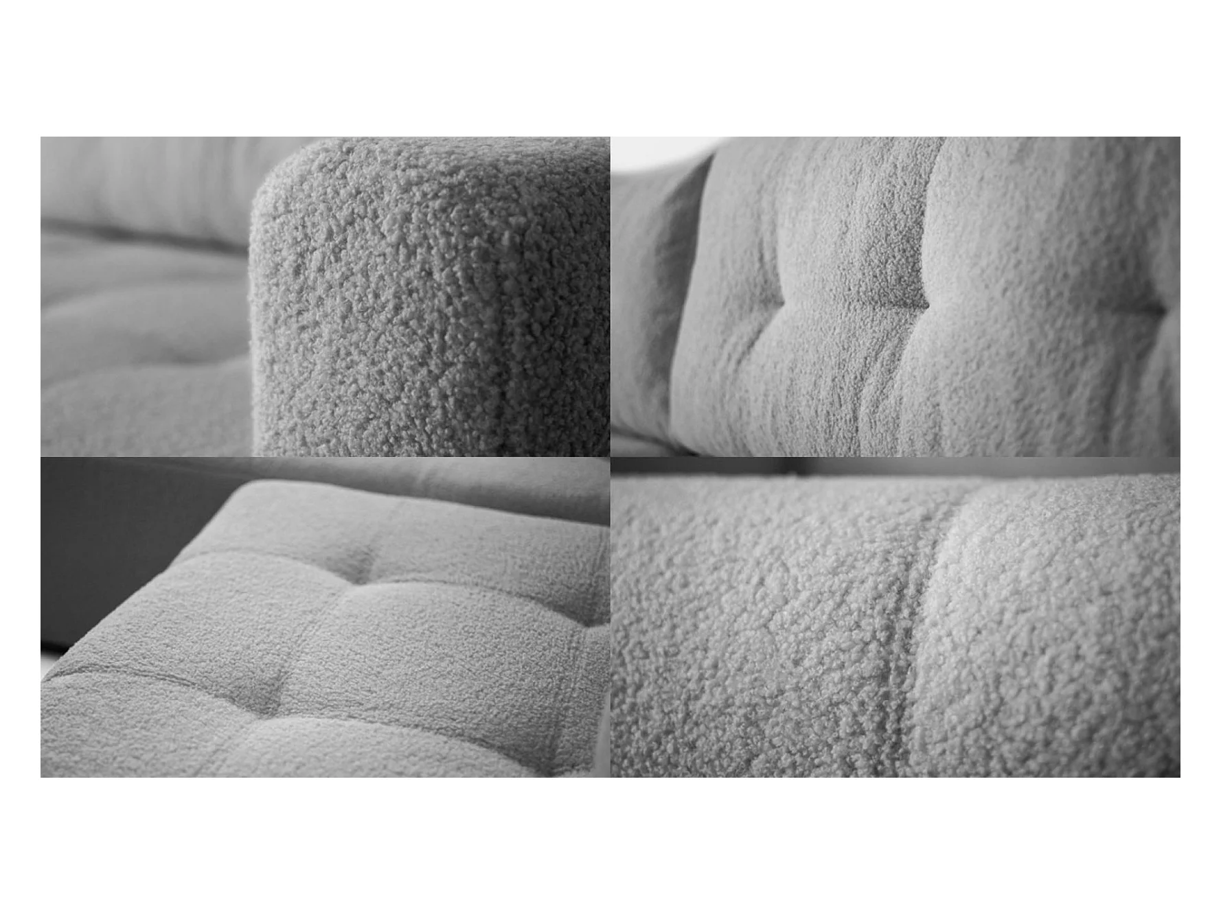 Canapé d'angle panoramique BOSTON en tissu capitonné-Gris chiné-Méridienne A droite
