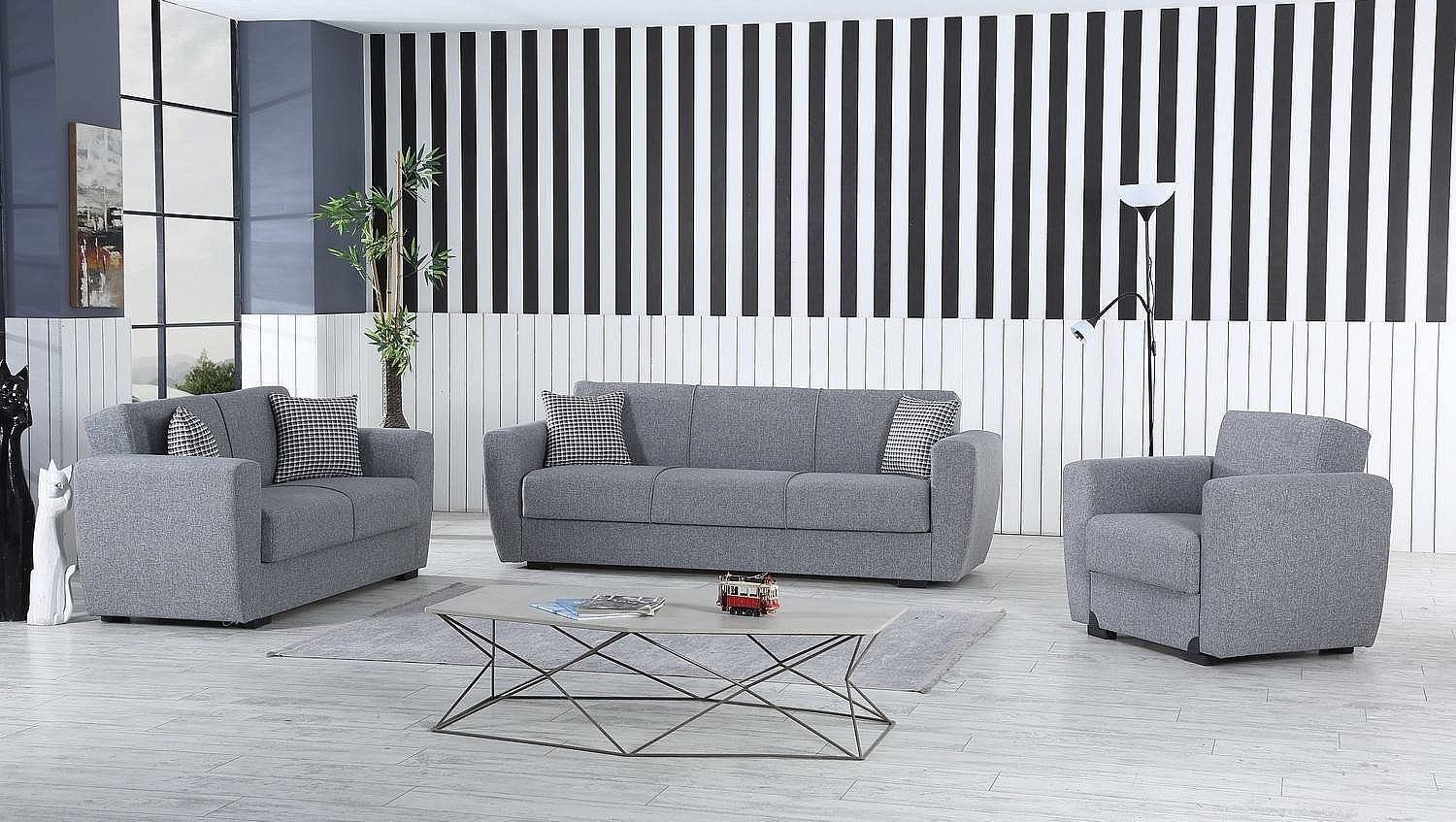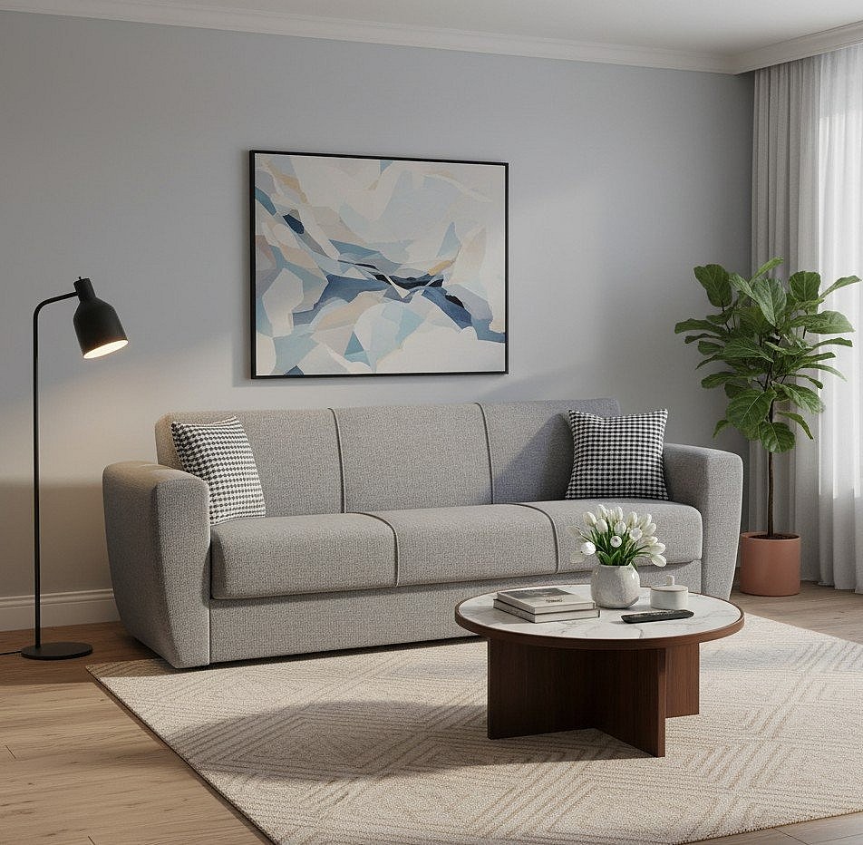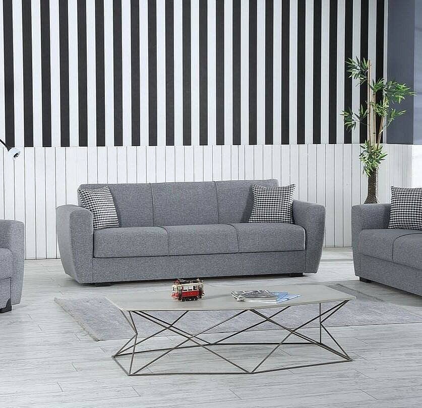 Canapé Dcorv, Canapé conteneur 3 places linéaire, Canapé de salon en tissu rembourré avec ouverture clic-clac, 223x84xh80 cm, Gris