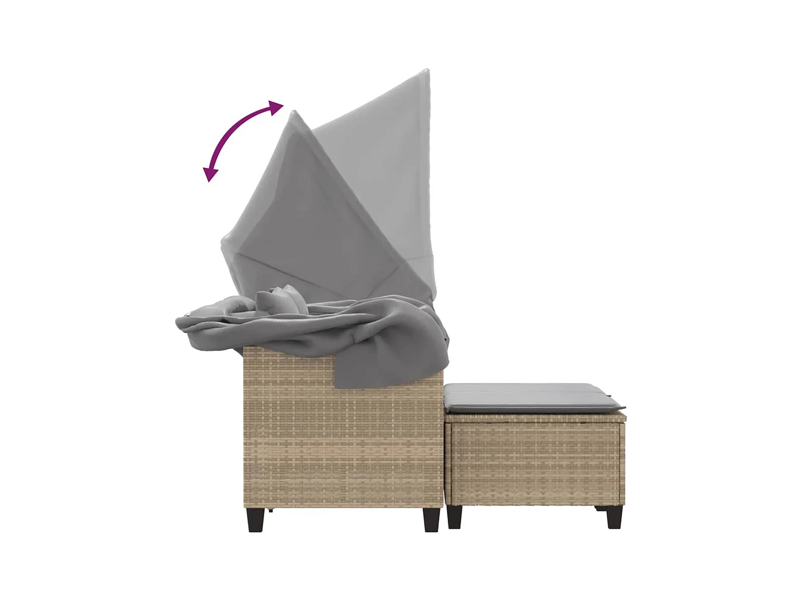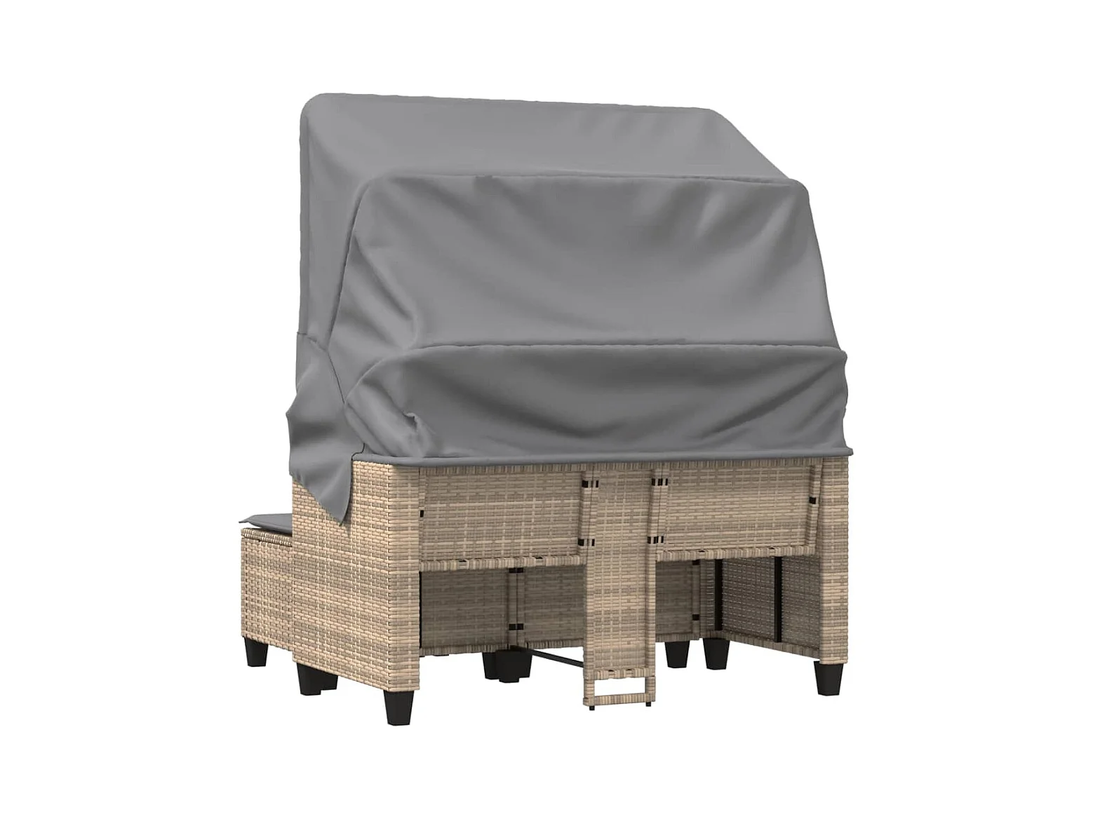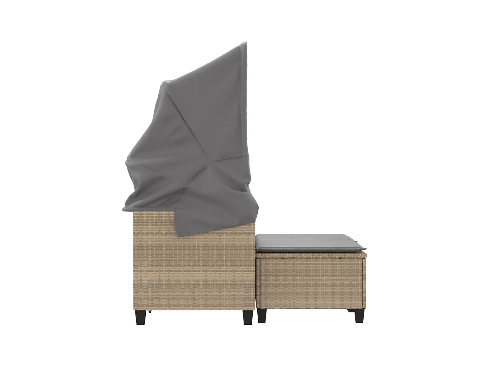 Canapé de jardin 2 places avec auvent et tabourets beige rotin