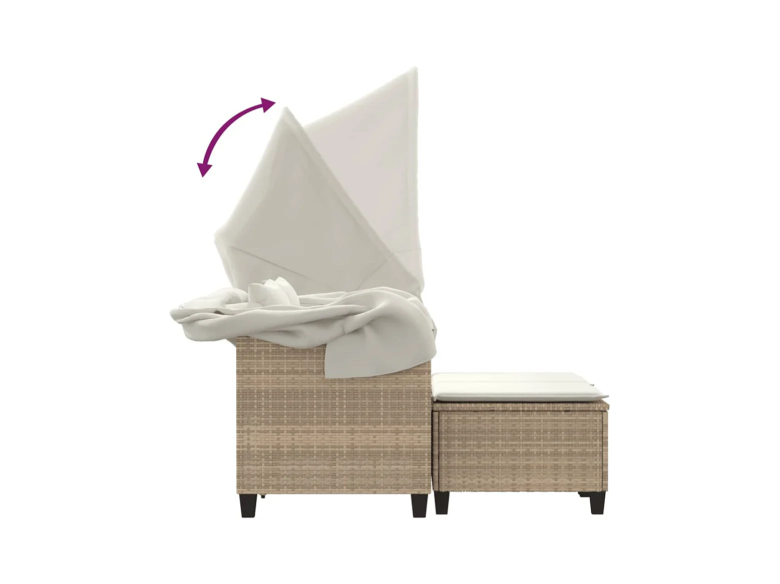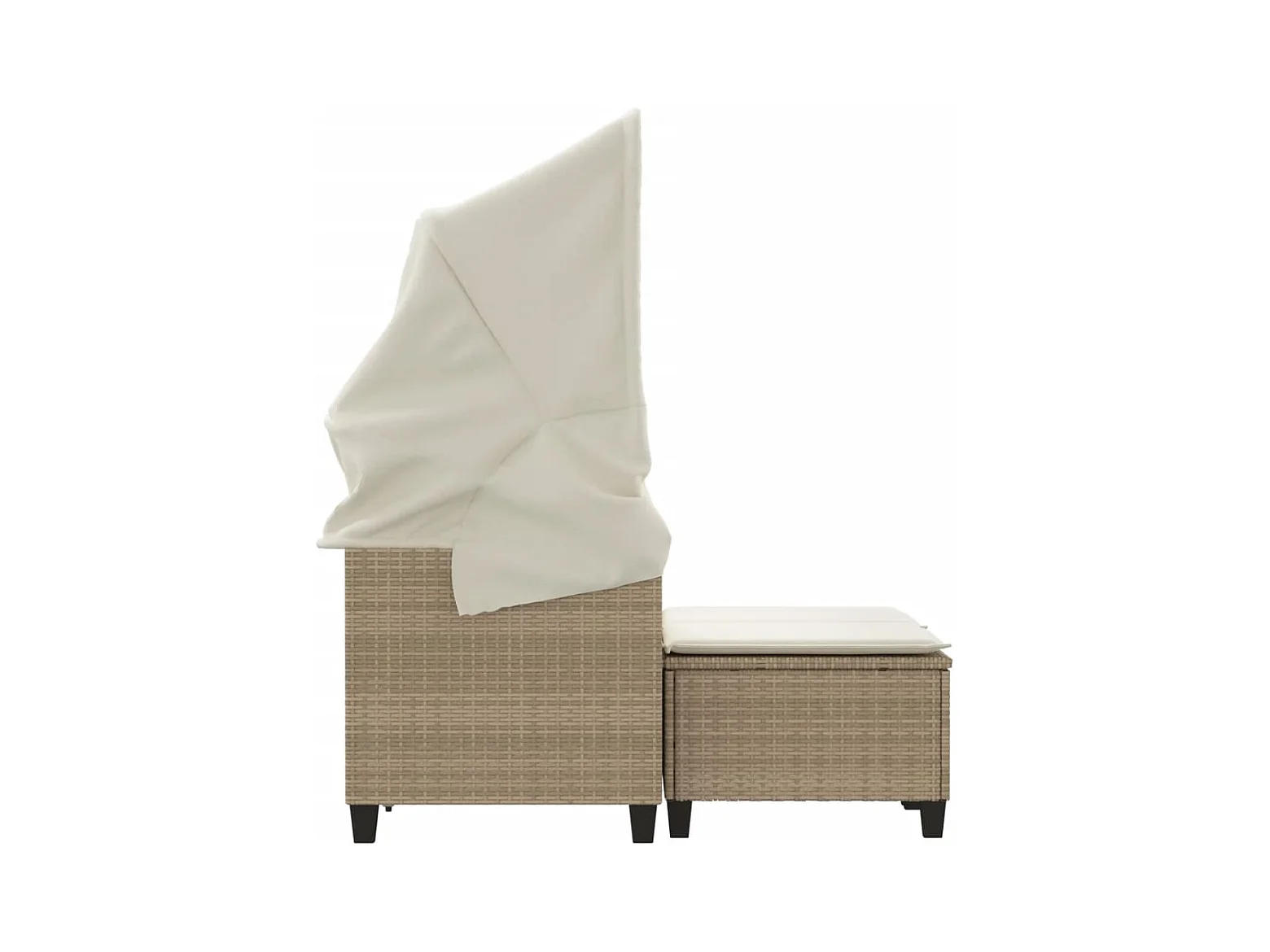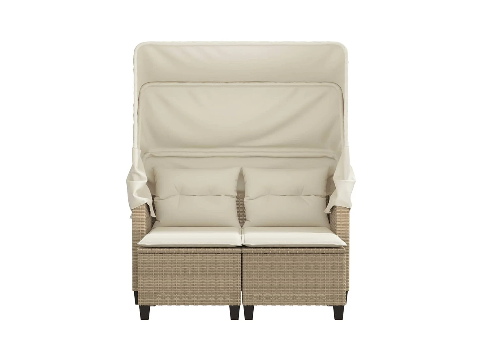 Canapé de jardin 2 places avec auvent et tabourets beige rotin