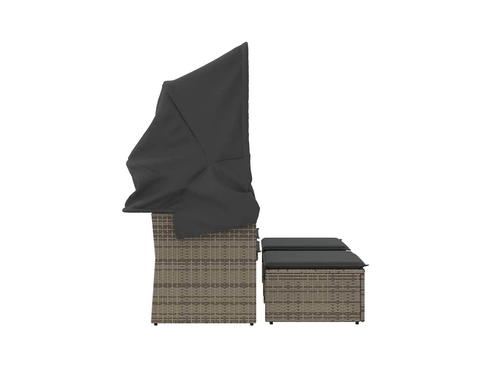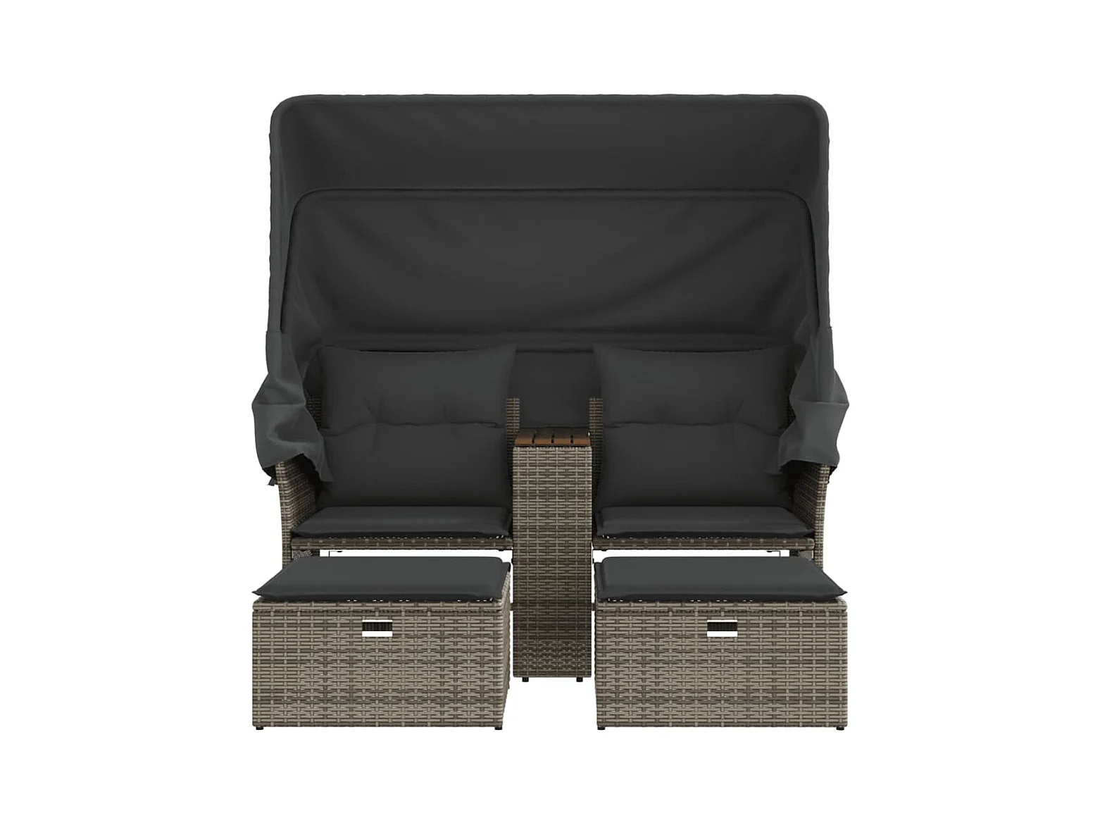 Canapé de jardin 2 places avec auvent et tabourets gris rotin FR832077