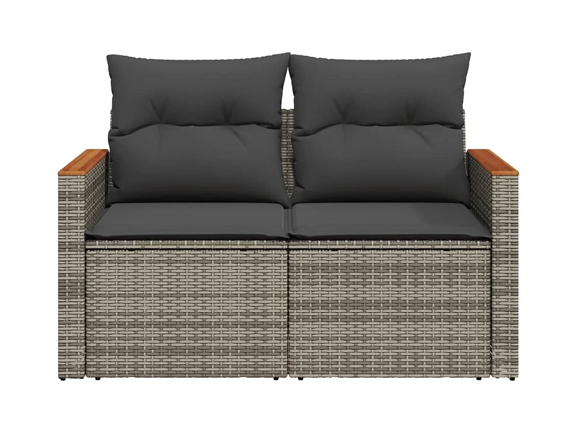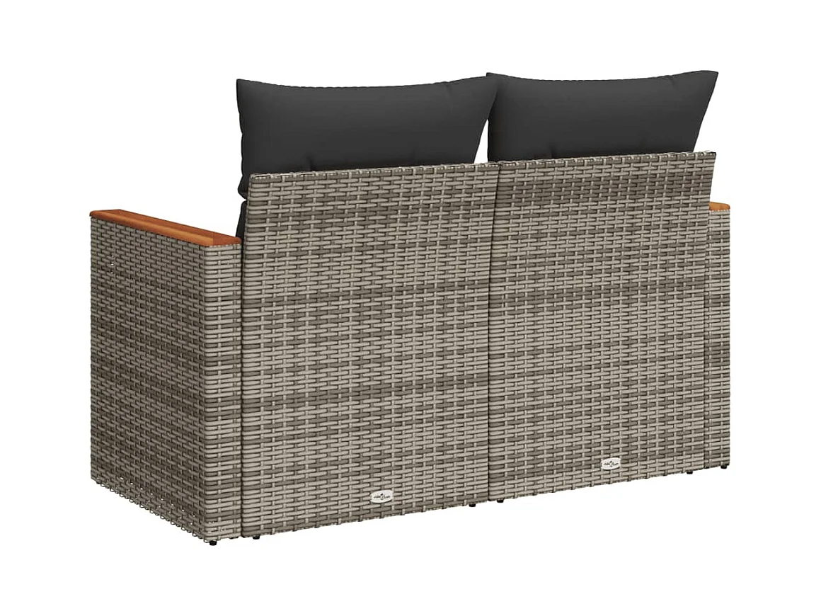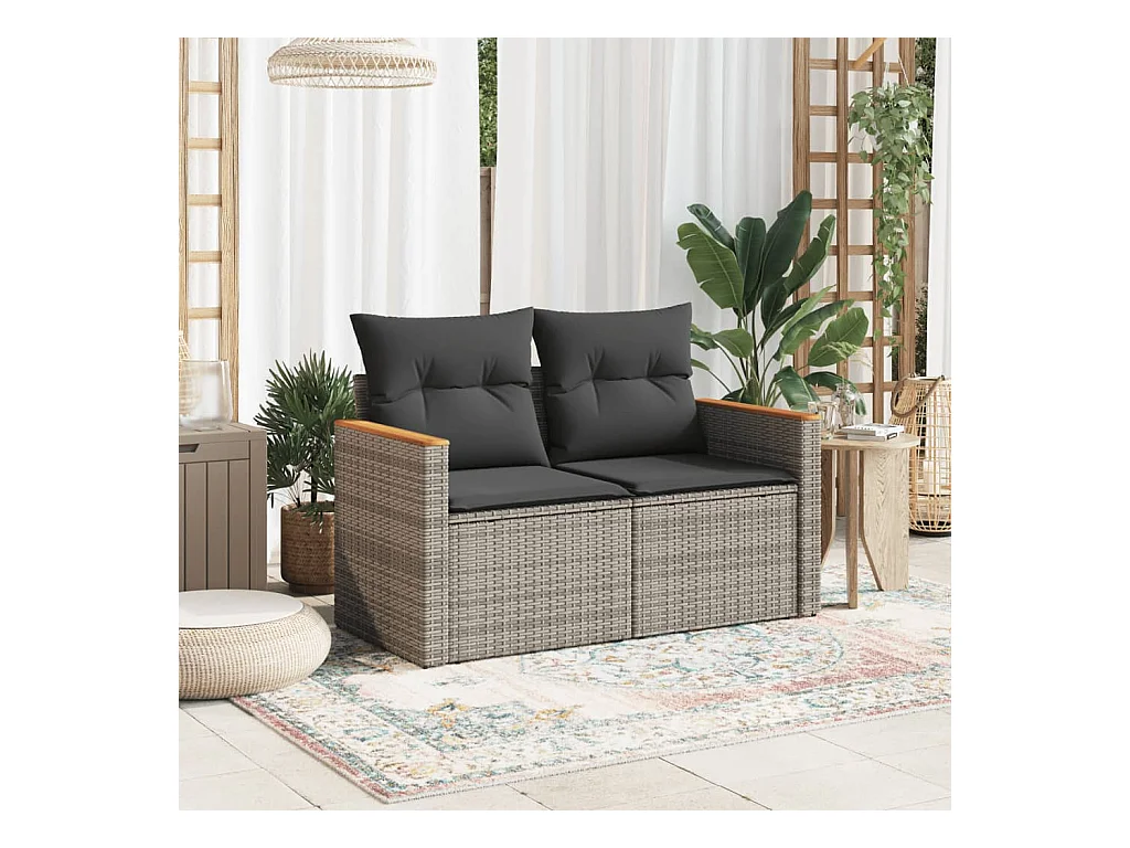 Canapé de jardin 2 places coussins gris résine tressée&acacia