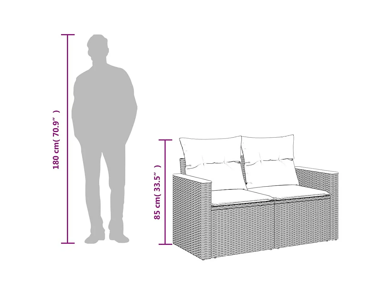 Canapé de jardin 2 places coussins noir résine tressée&acacia