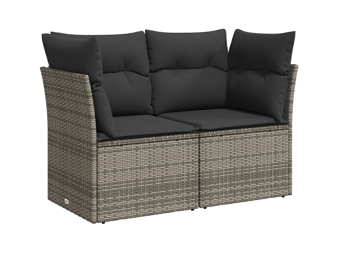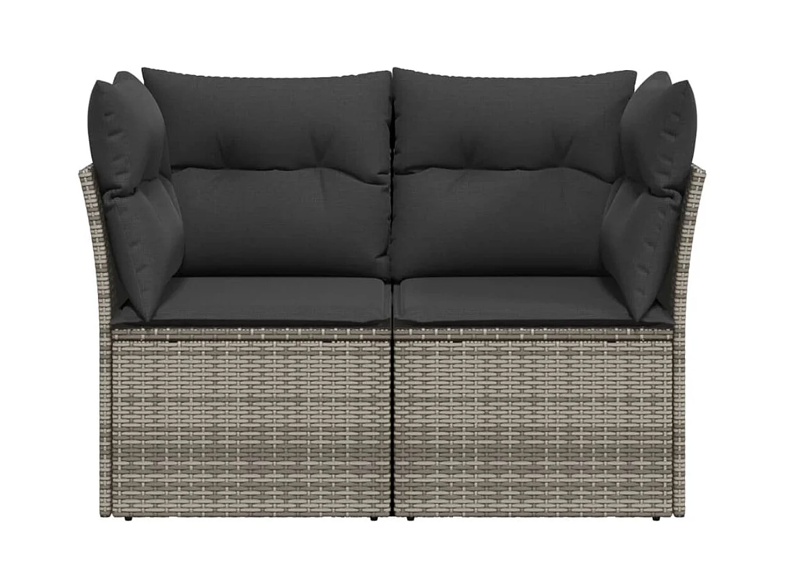 Canapé de jardin 2 places avec coussins gris résine tressée