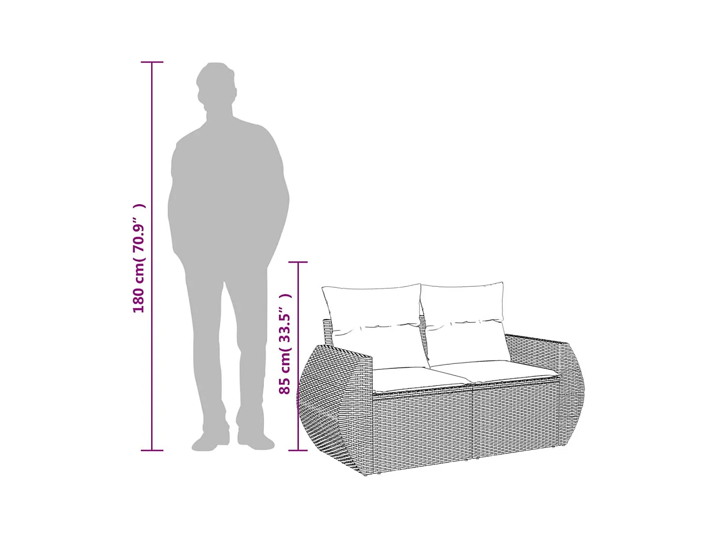Canapé de jardin 2 places avec coussins gris résine tressée