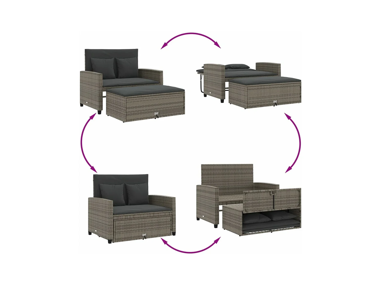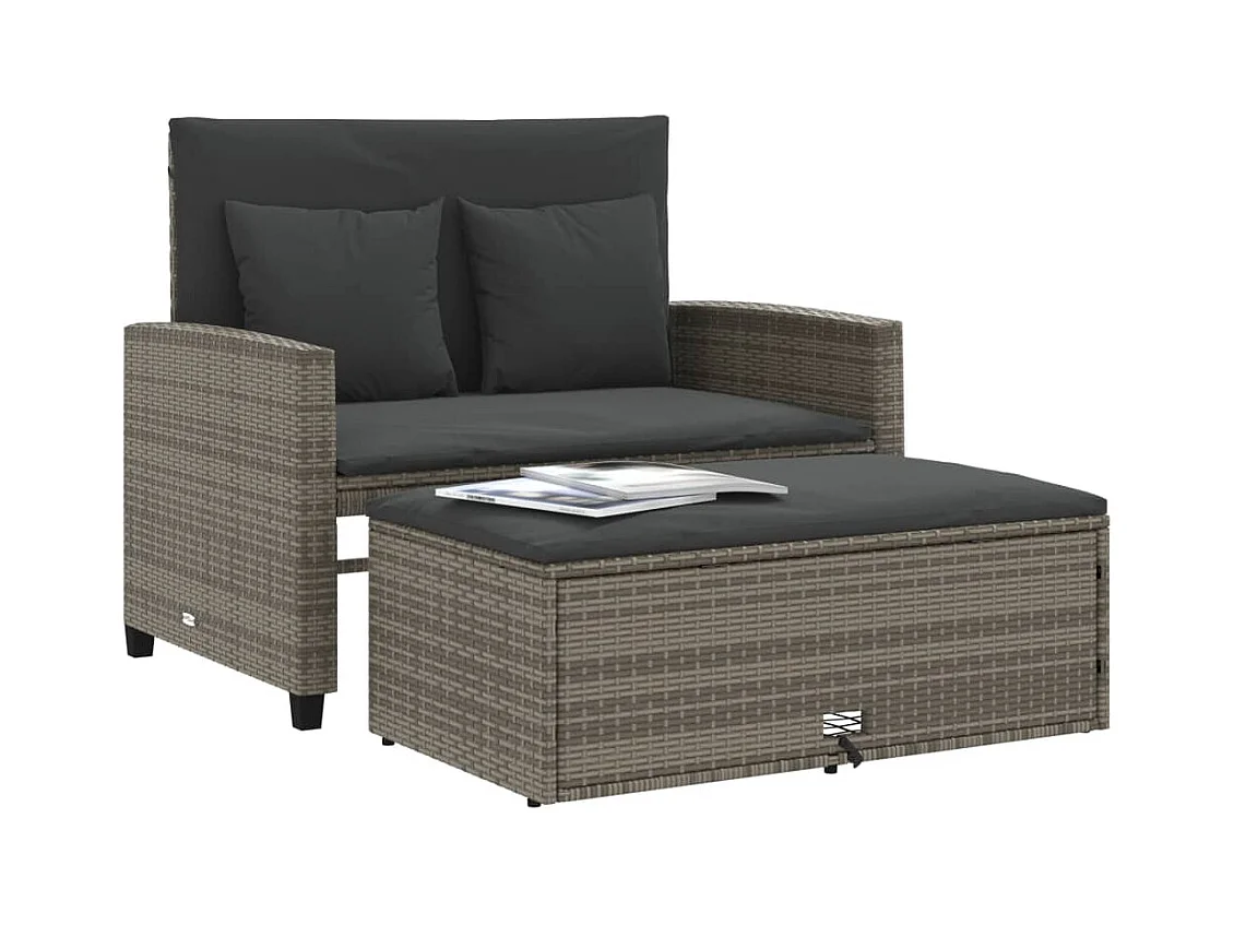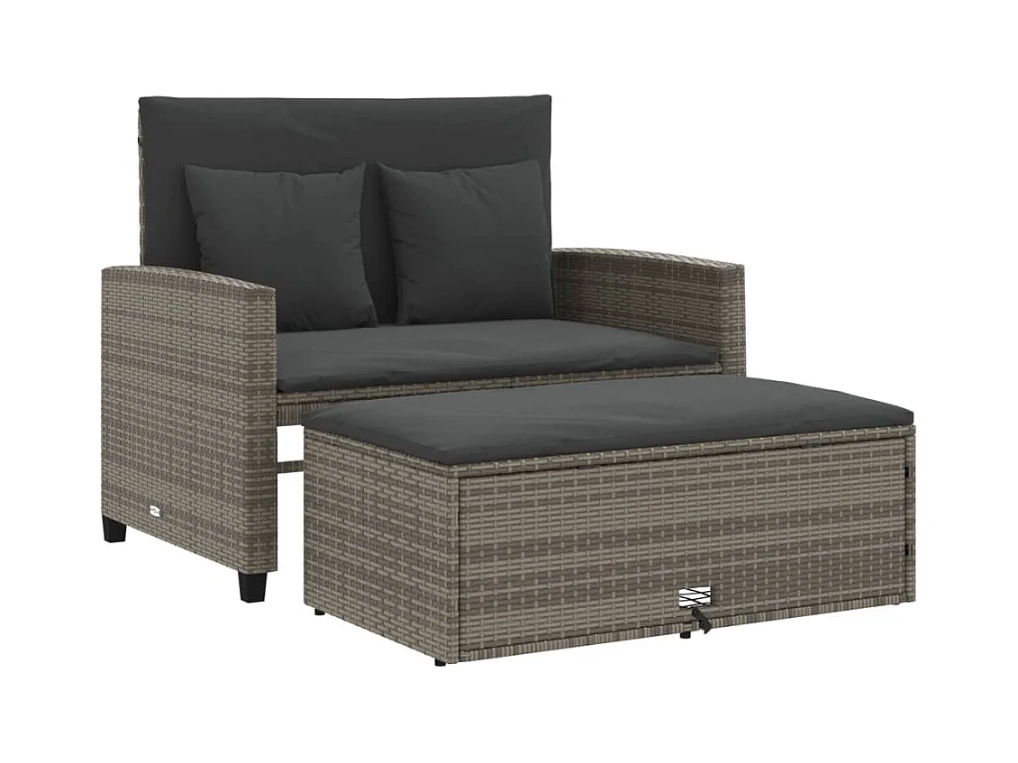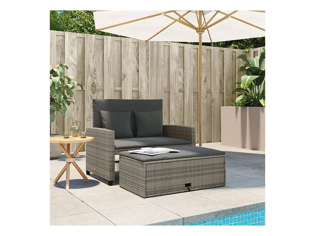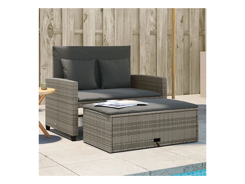 Canapé de jardin inclinable 2 places avec table gris poly rotin FR426399