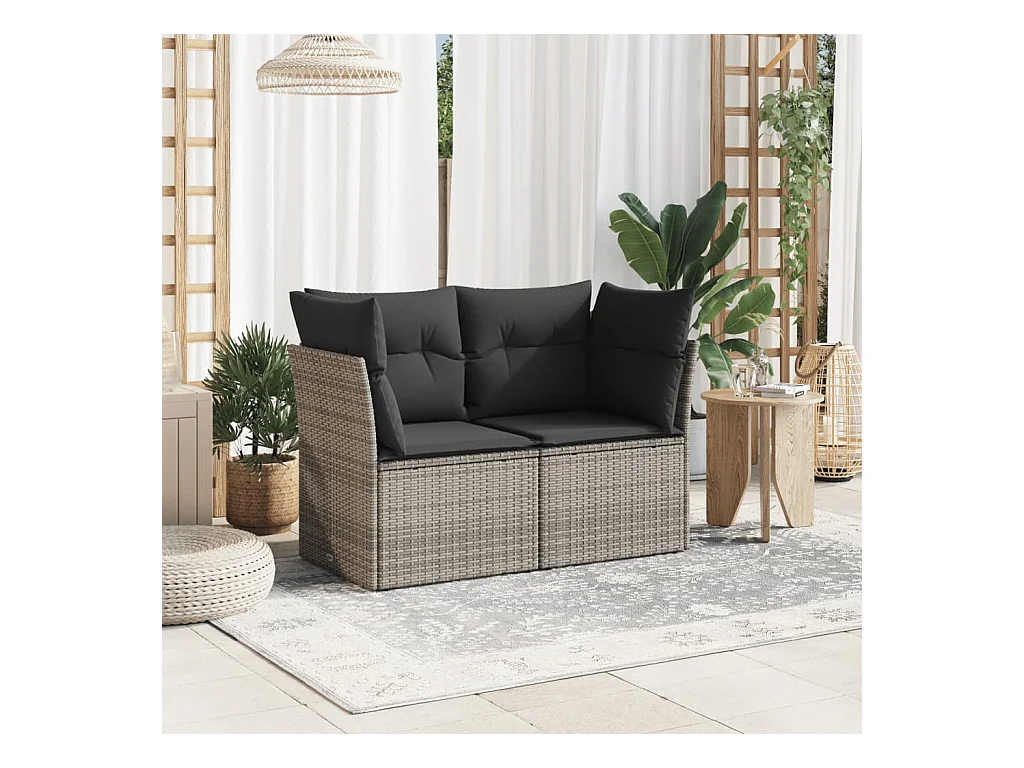 Canapé de jardin 2 places avec coussins gris résine tressée REO83416