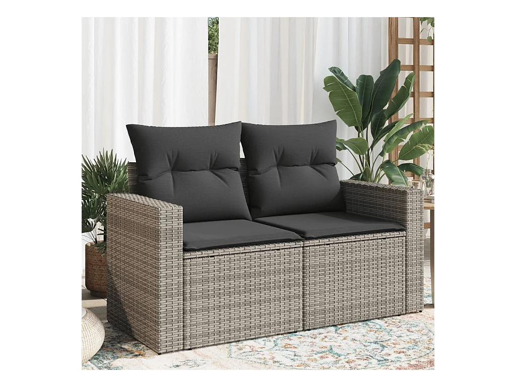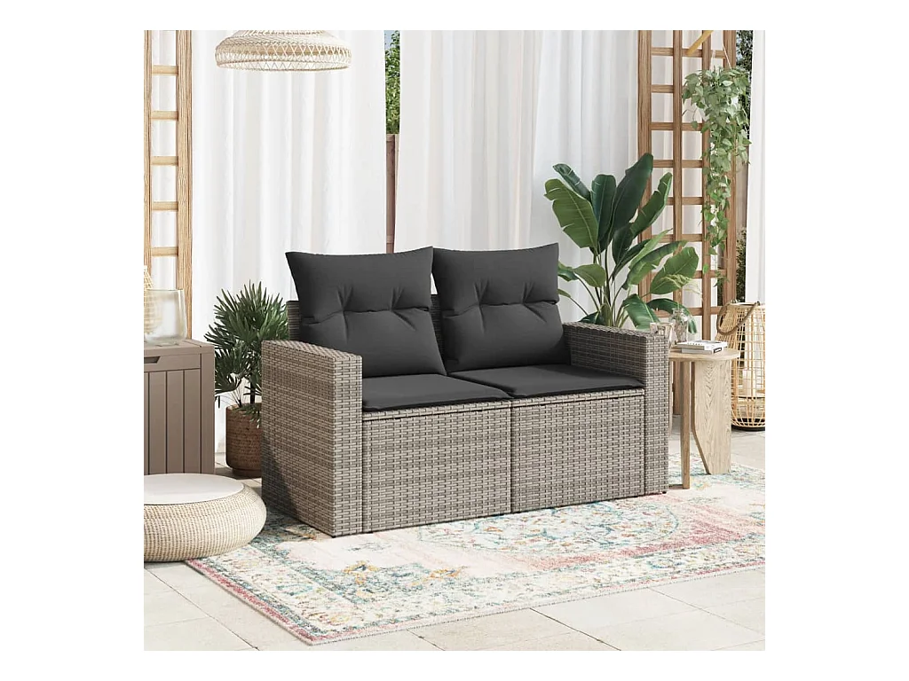 Canapé de jardin 2 places avec coussins gris résine tressée REO83416