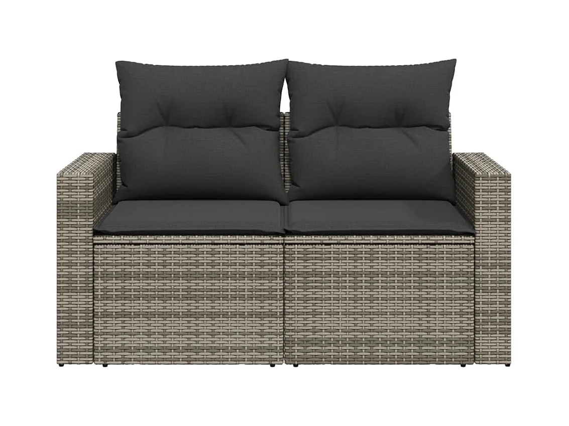 Canapé de jardin 2 places avec coussins gris résine tressée REO26982