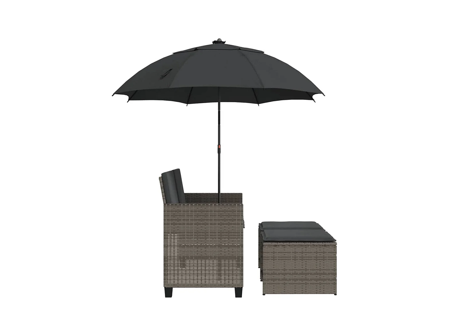 Canapé de jardin 2 places avec parasol et tabourets gris rotin