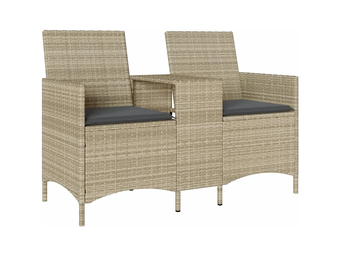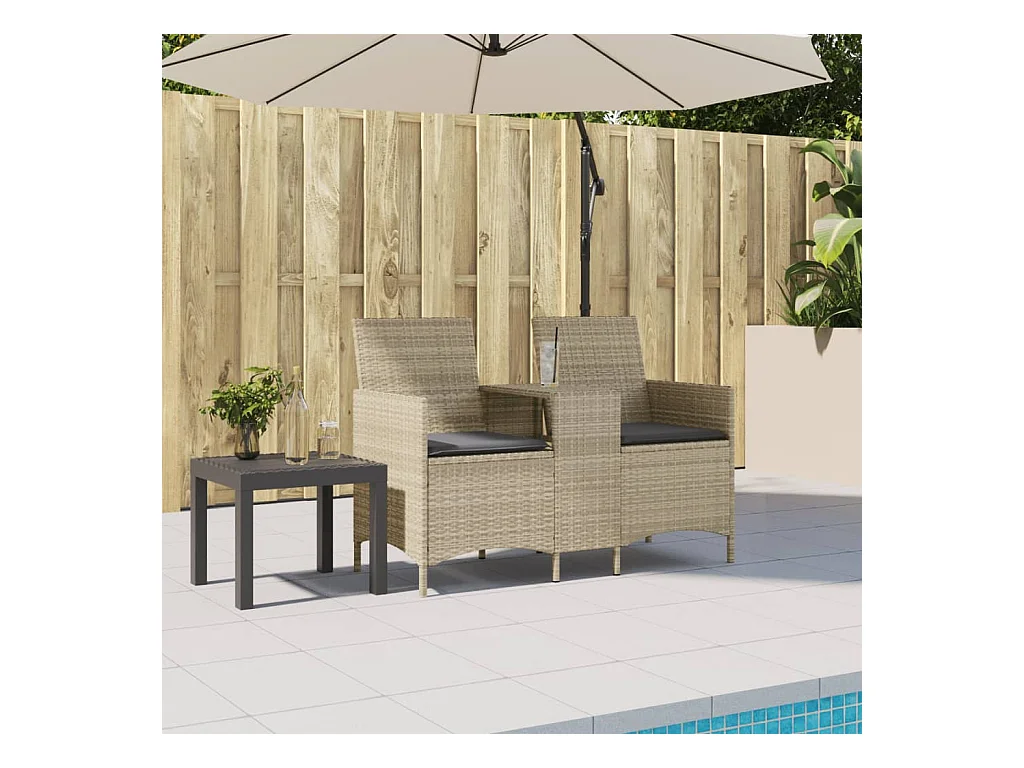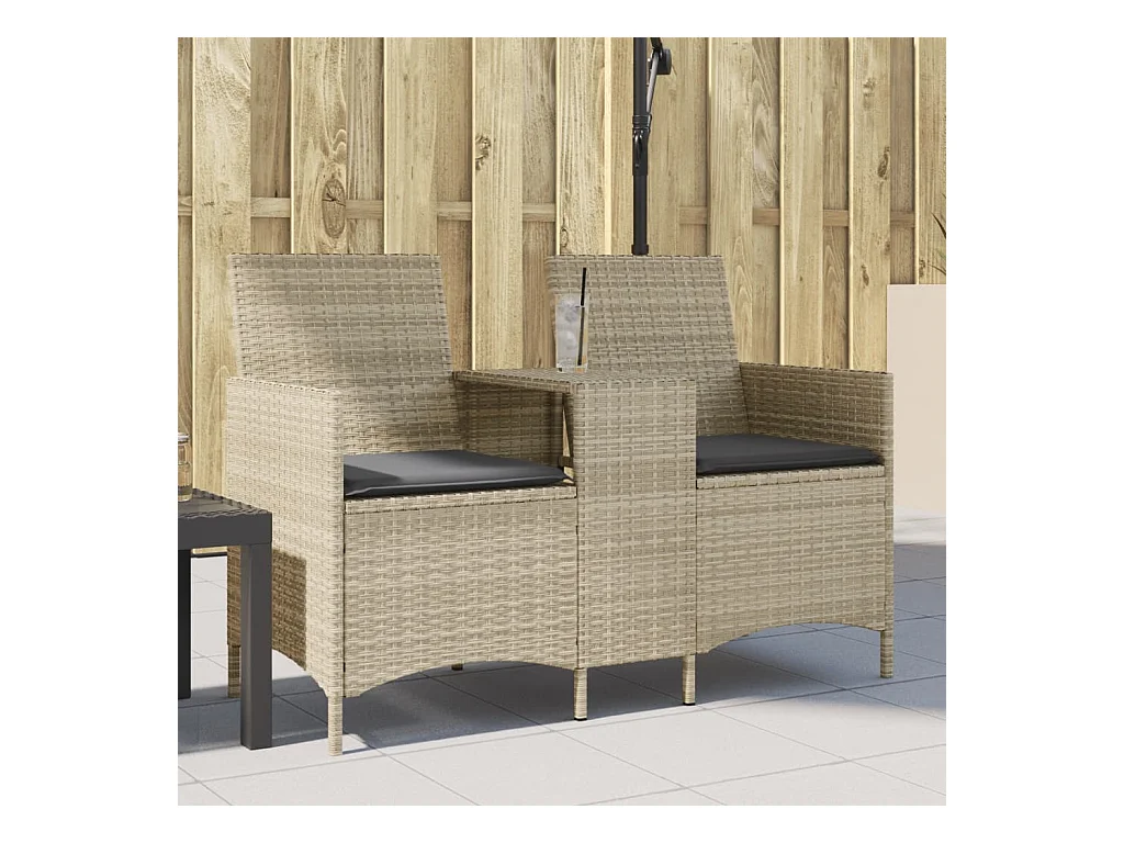 Canapé de jardin 2 places avec table et coussins résine tressée FR109903
