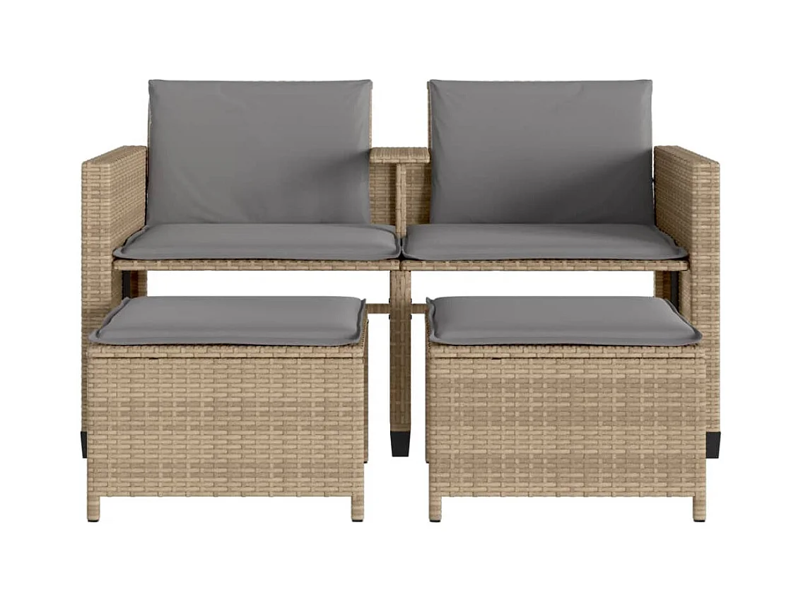 Canapé de jardin 2 places avec tabourets beige résine tressée FR640335