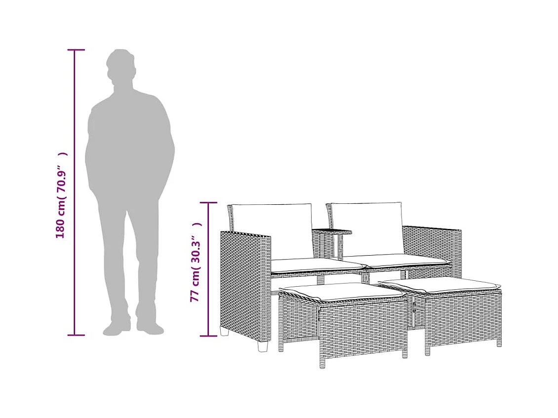 Canapé de jardin 2 places avec table et tabourets beige rotin FR155001