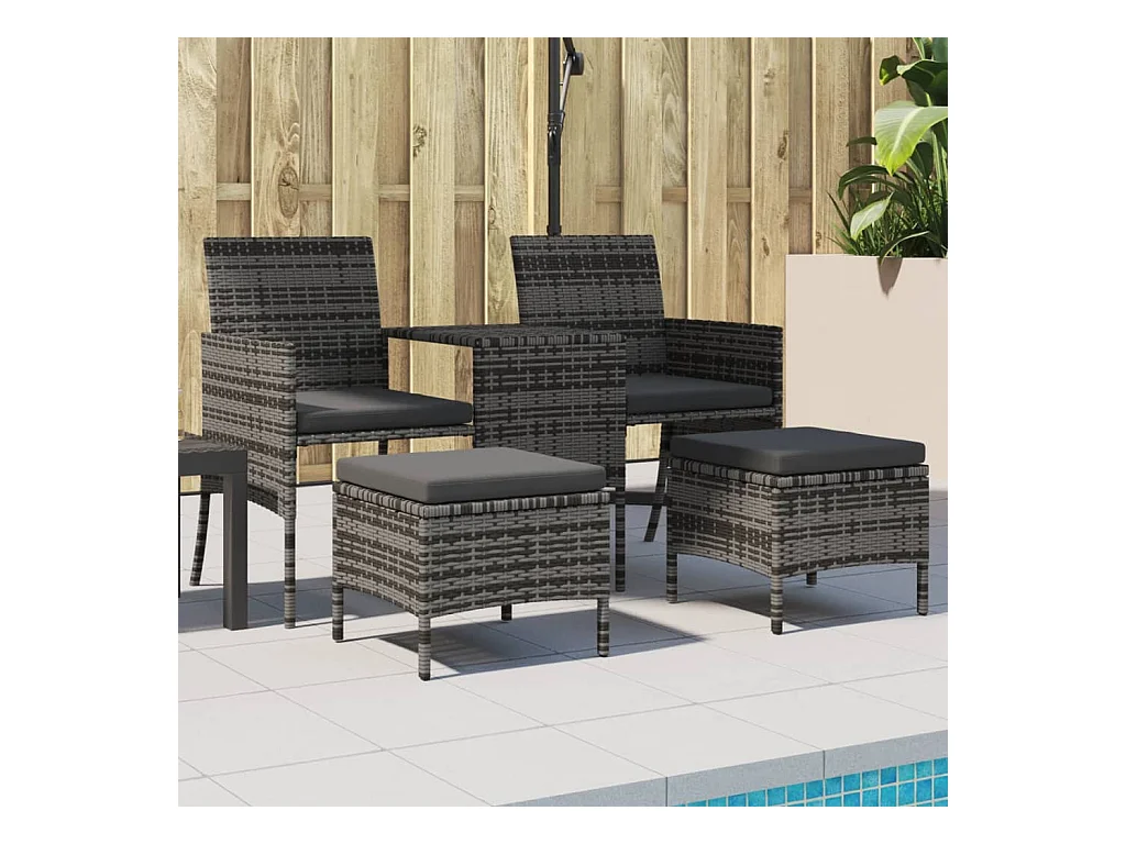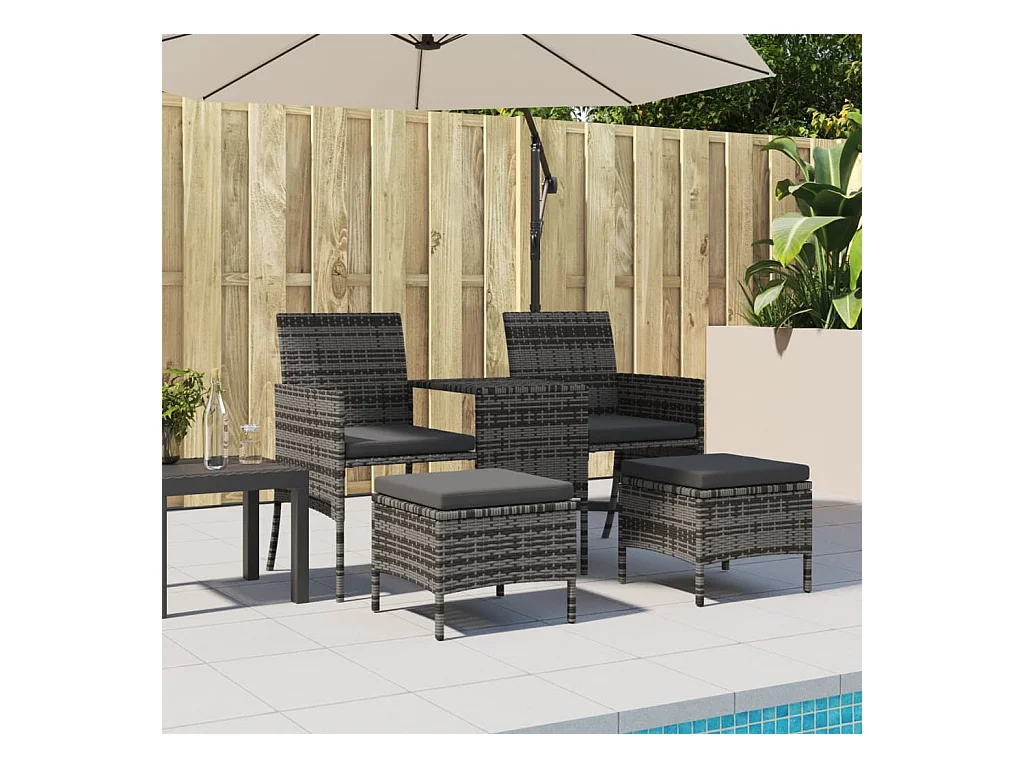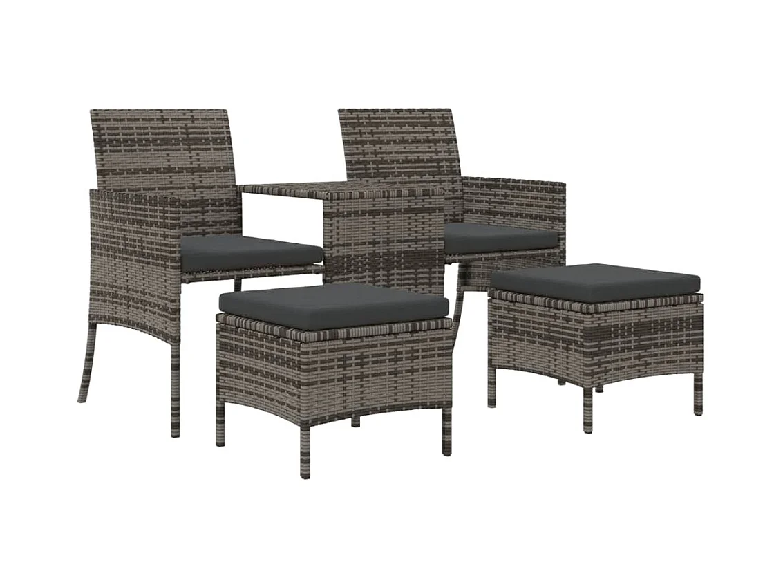 Canapé de jardin 2 places avec table et tabourets gris rotin FR745912