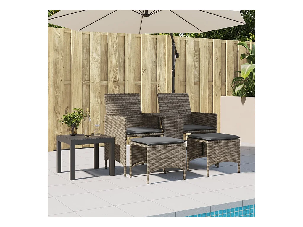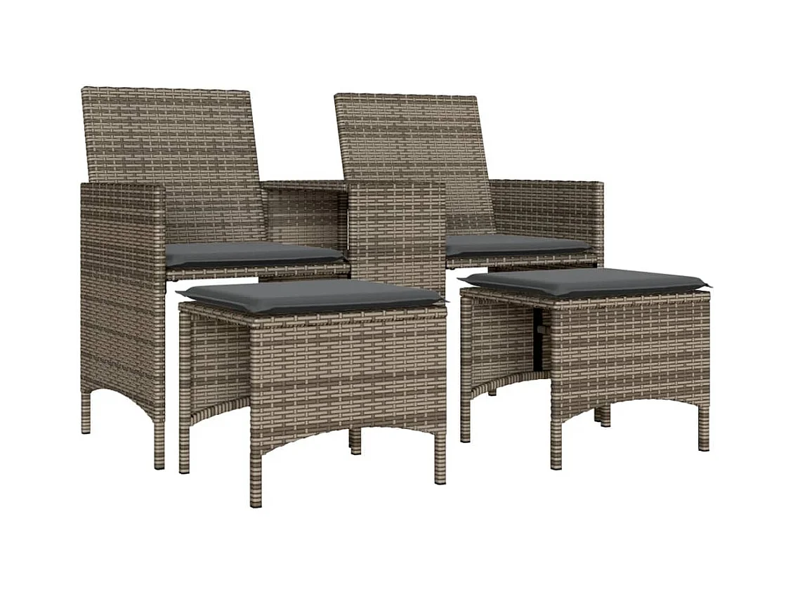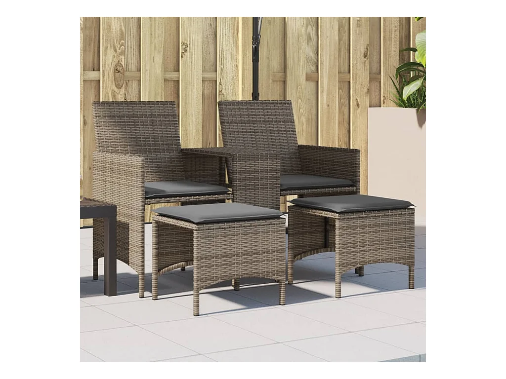 Canapé de jardin 2 places avec table et tabourets gris rotin FR904486