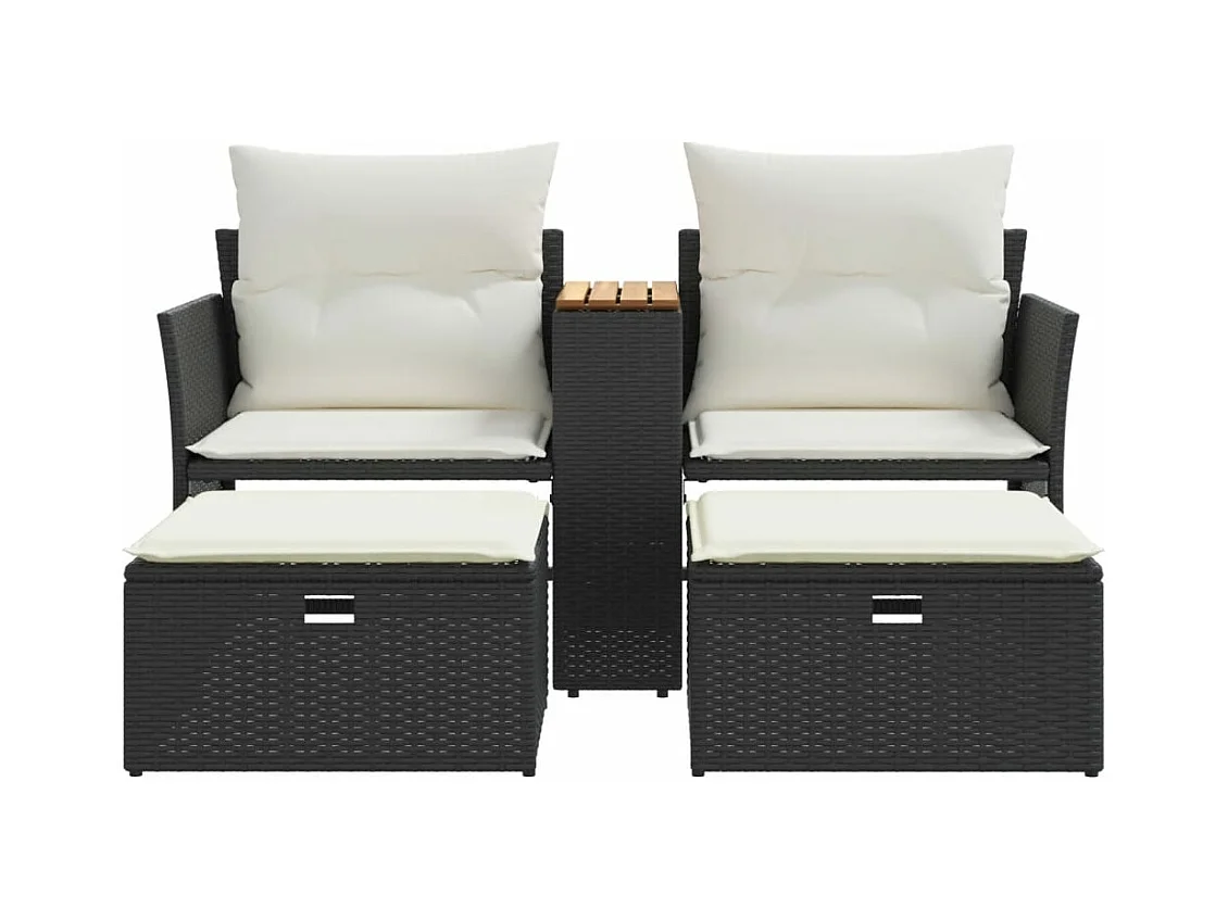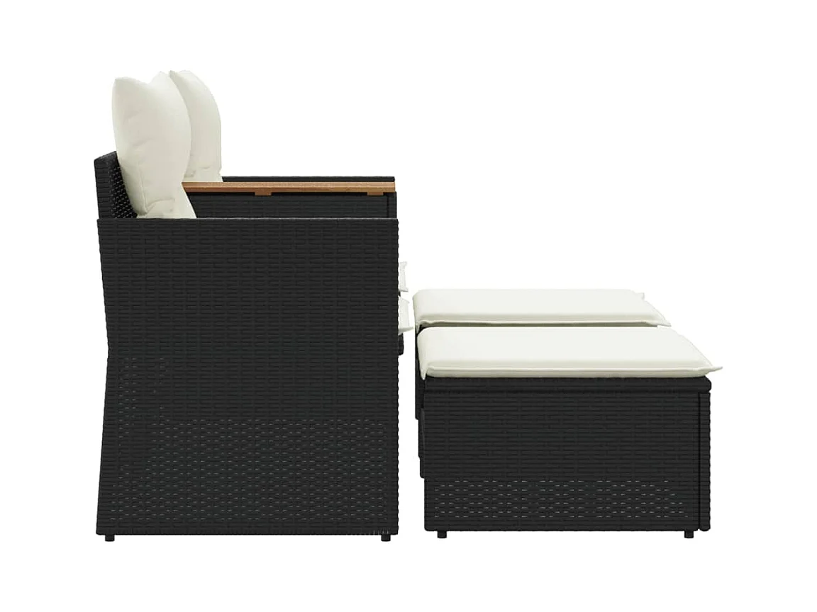 Canapé de jardin 2 places avec tabourets noir résine tressée FR233036