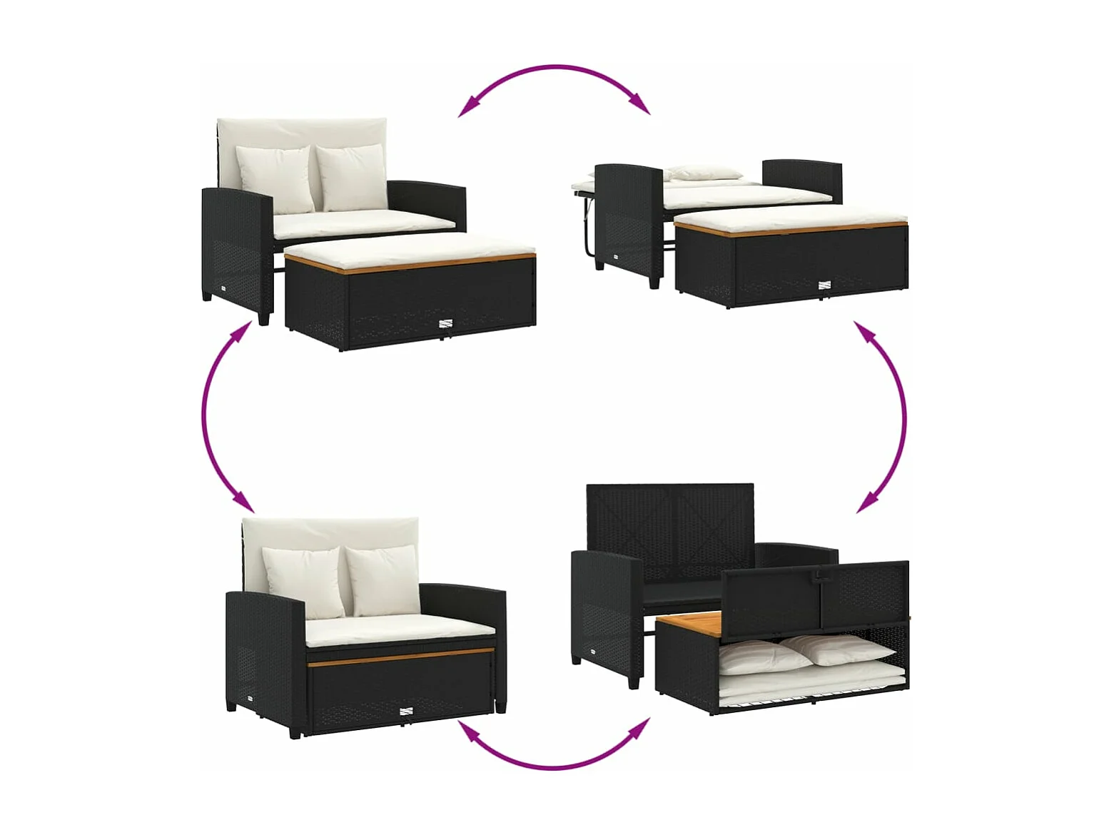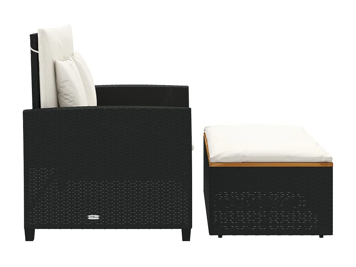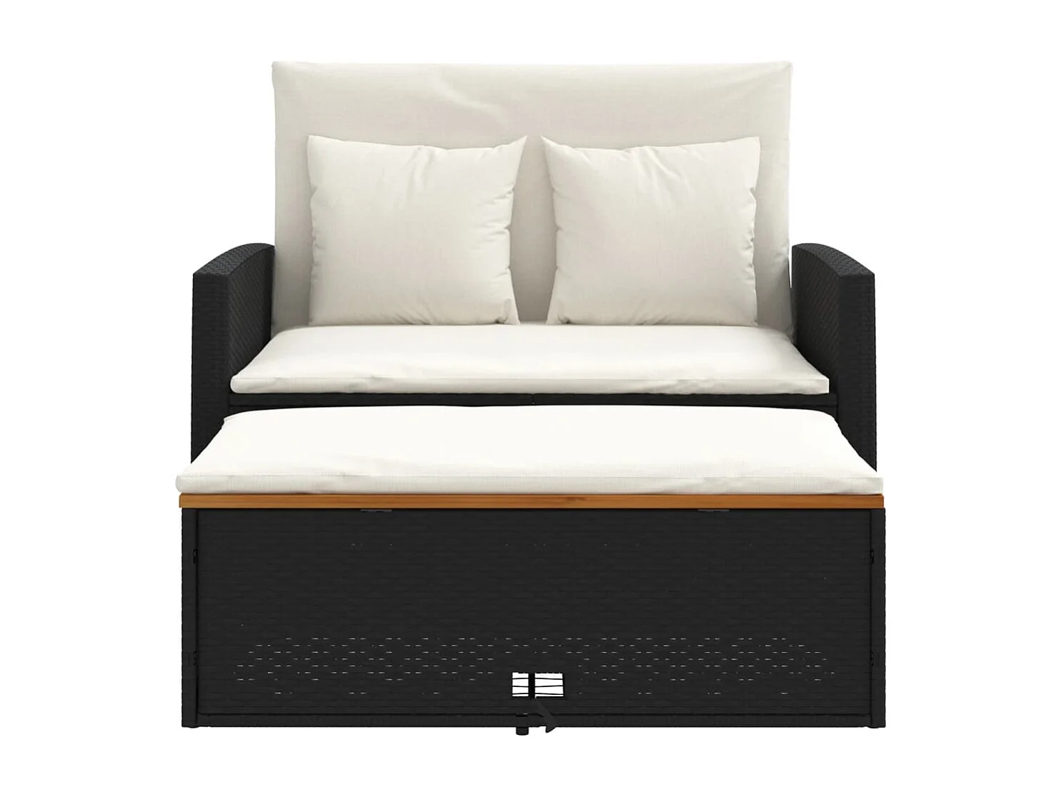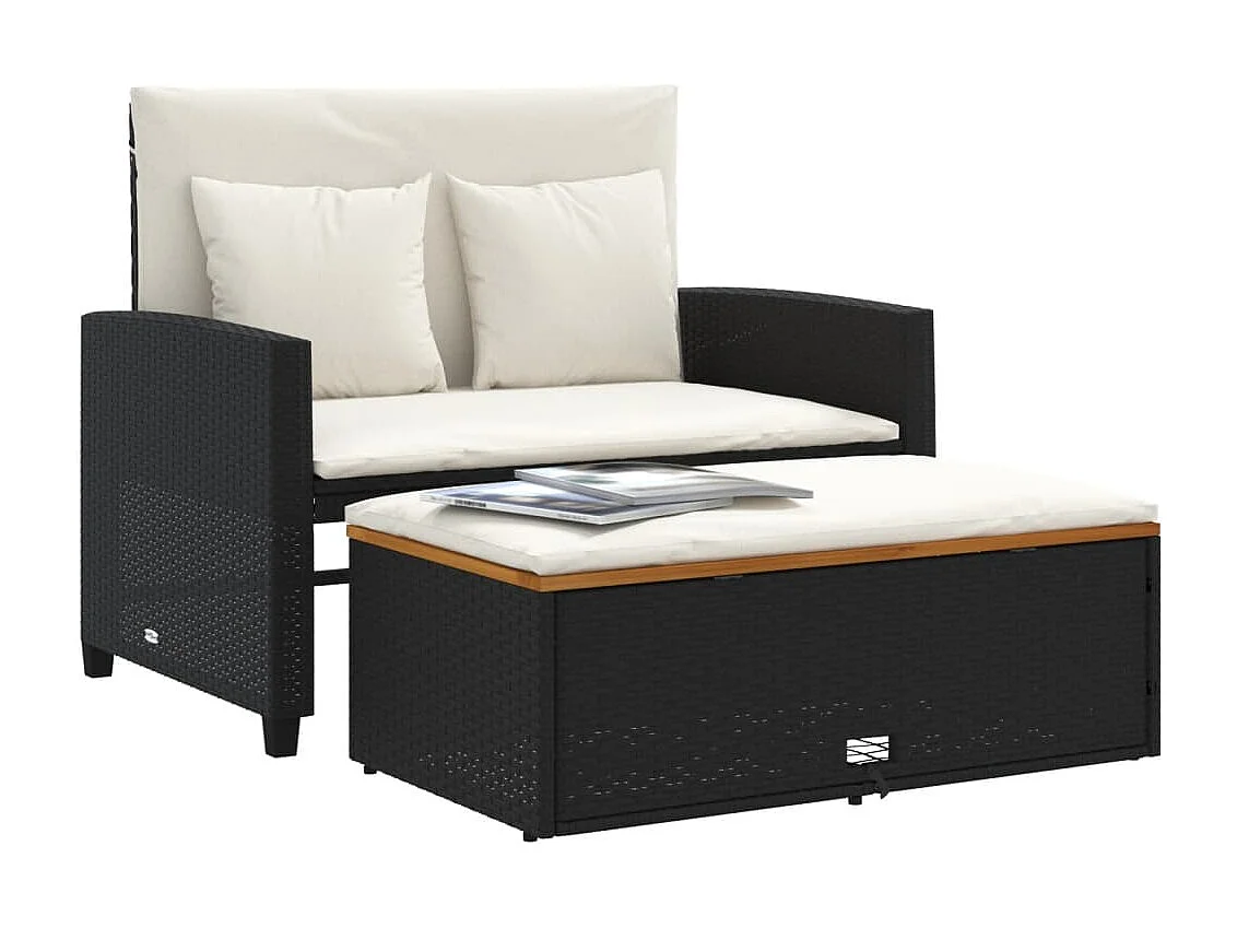 Canapé de jardin 2 places coussins noir résine tressée&acacia