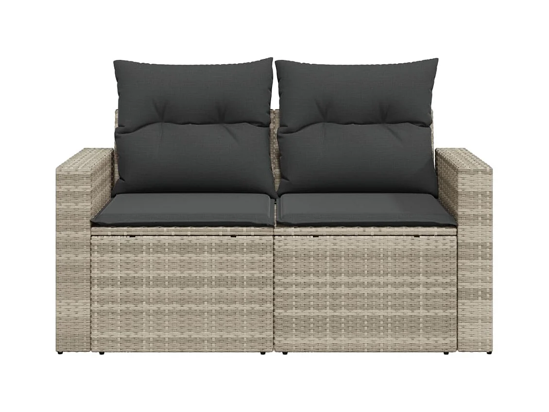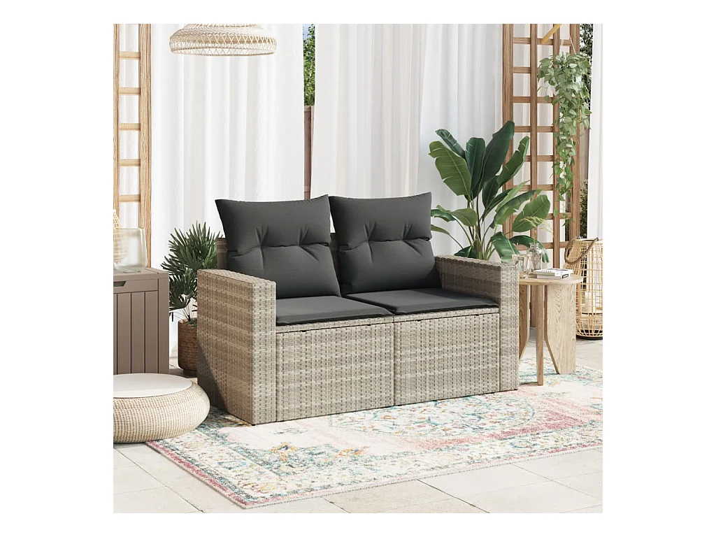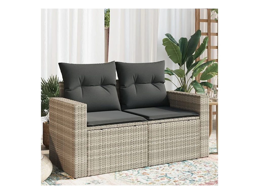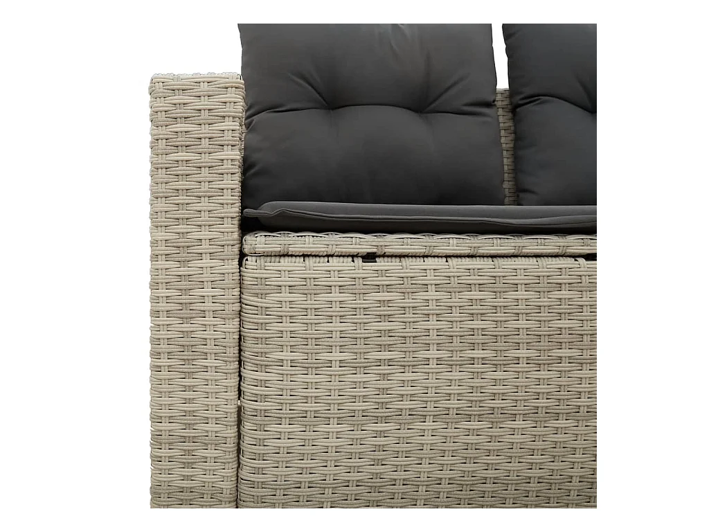 Canapé de jardin 2 places et coussins gris clair résine tressée