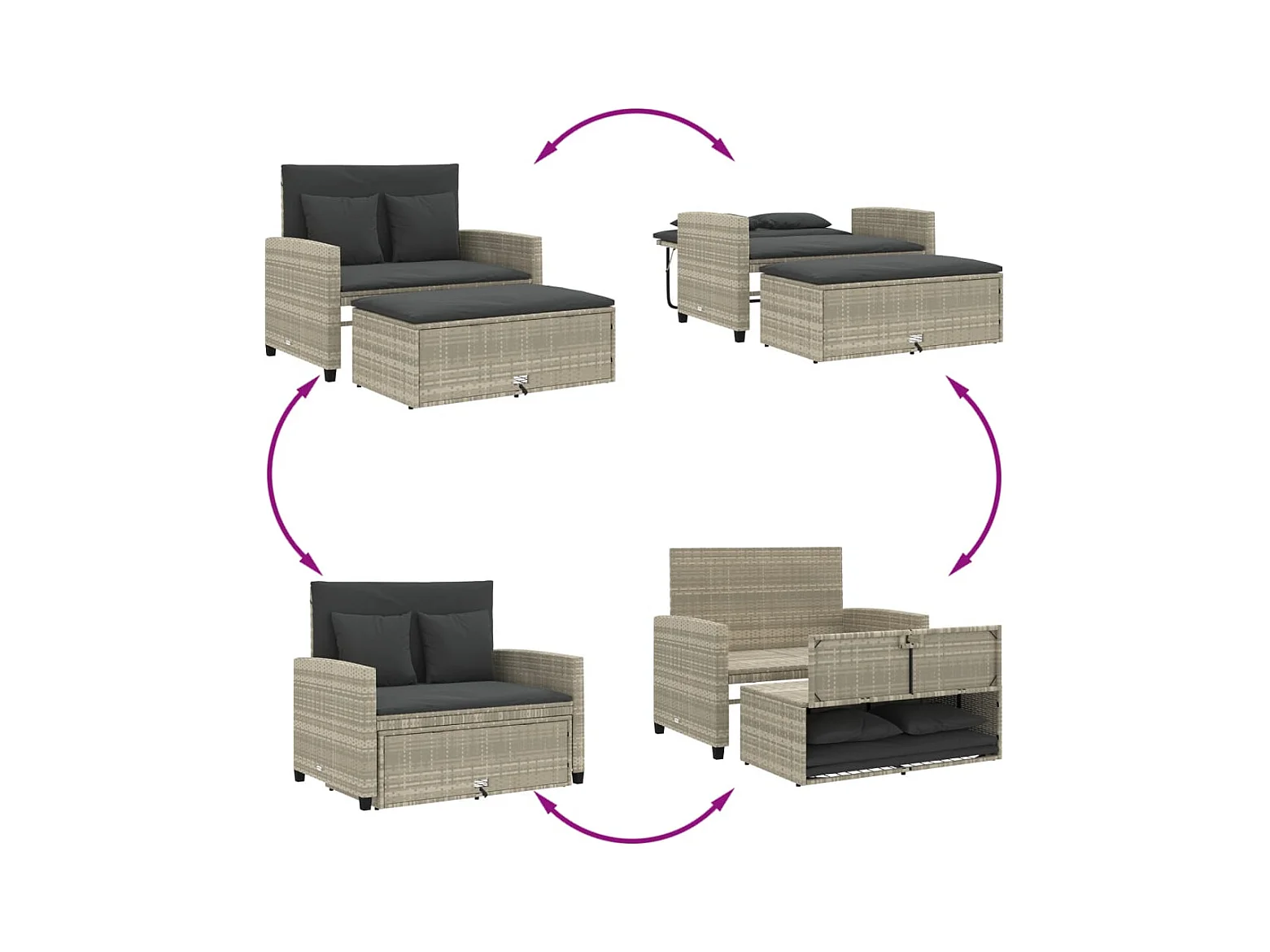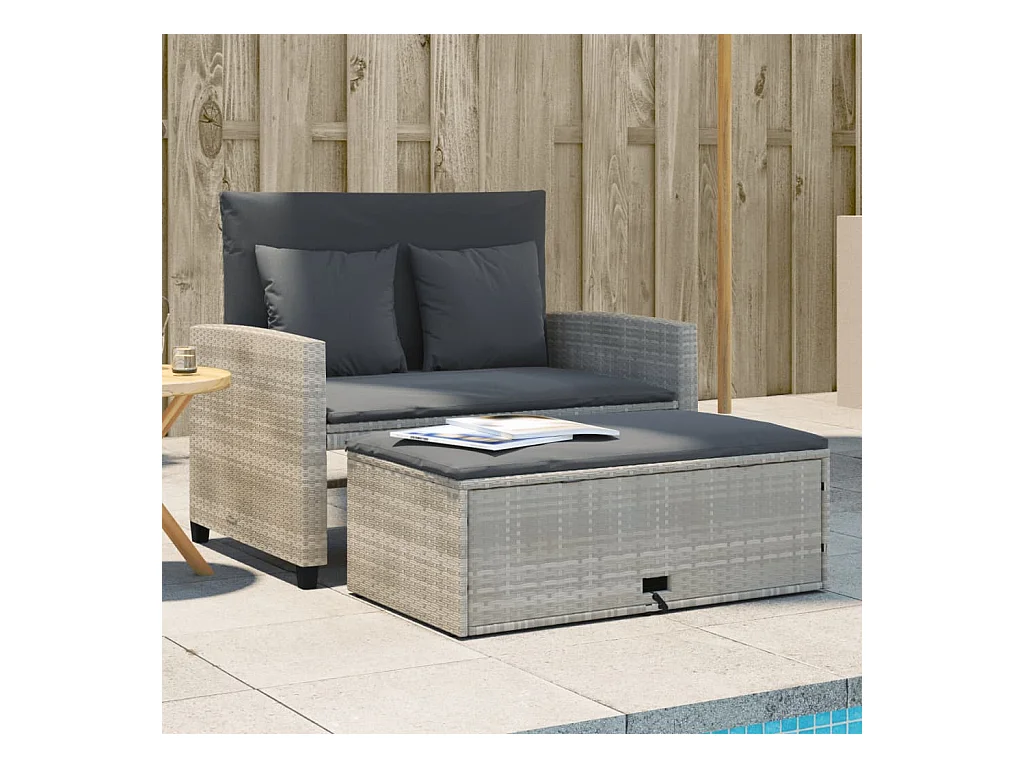 Canapé de jardin inclinable 2 places avec table gris poly rotin FR722797