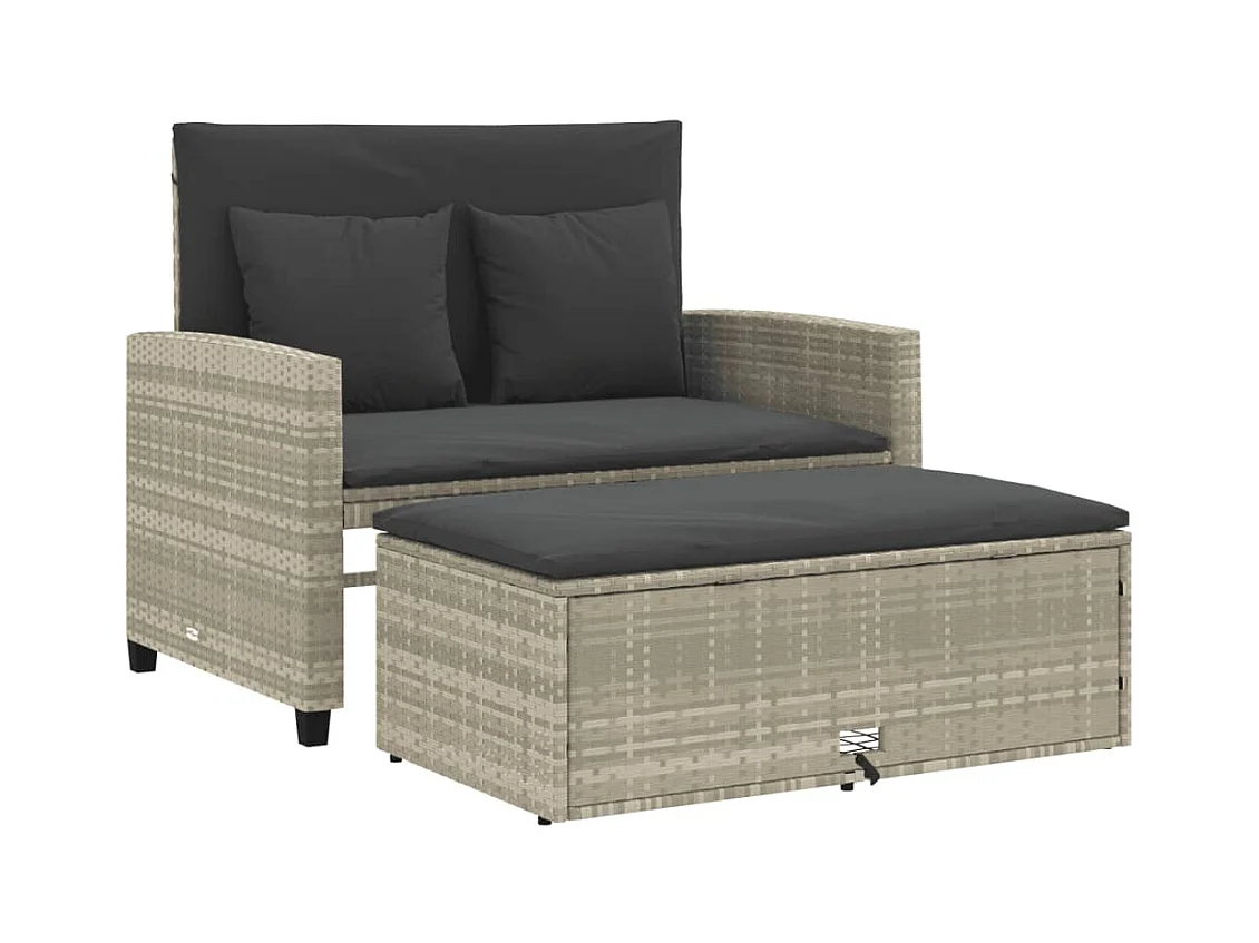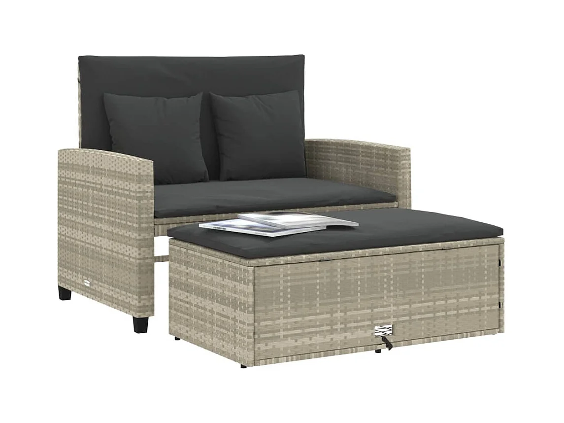 Canapé de jardin 2 places et coussins gris clair résine tressée FR976690