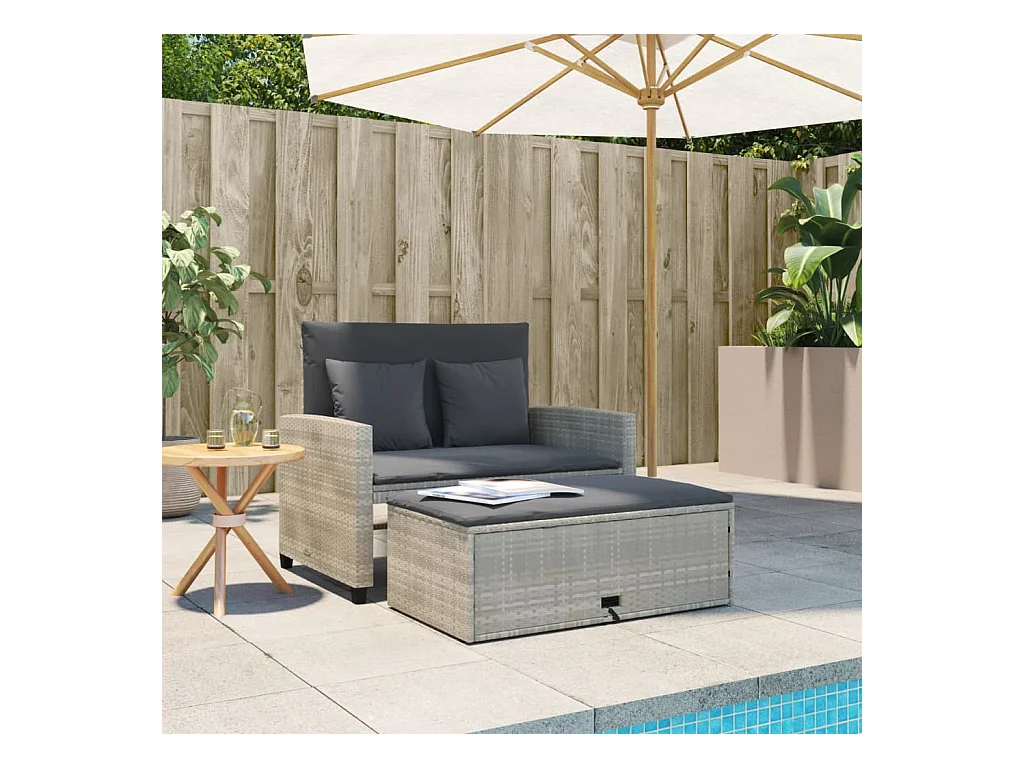 Canapé de jardin inclinable 2 places avec table gris poly rotin FR128573