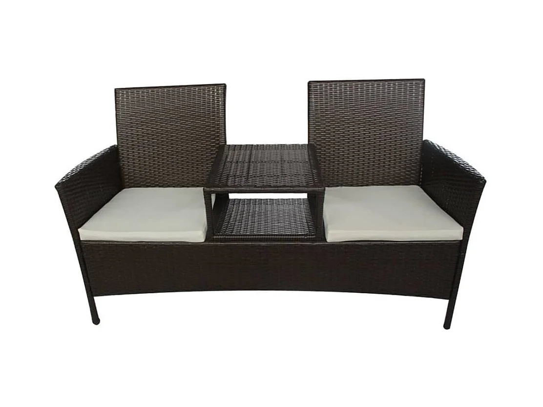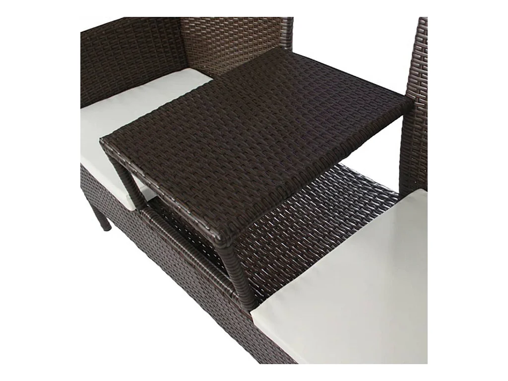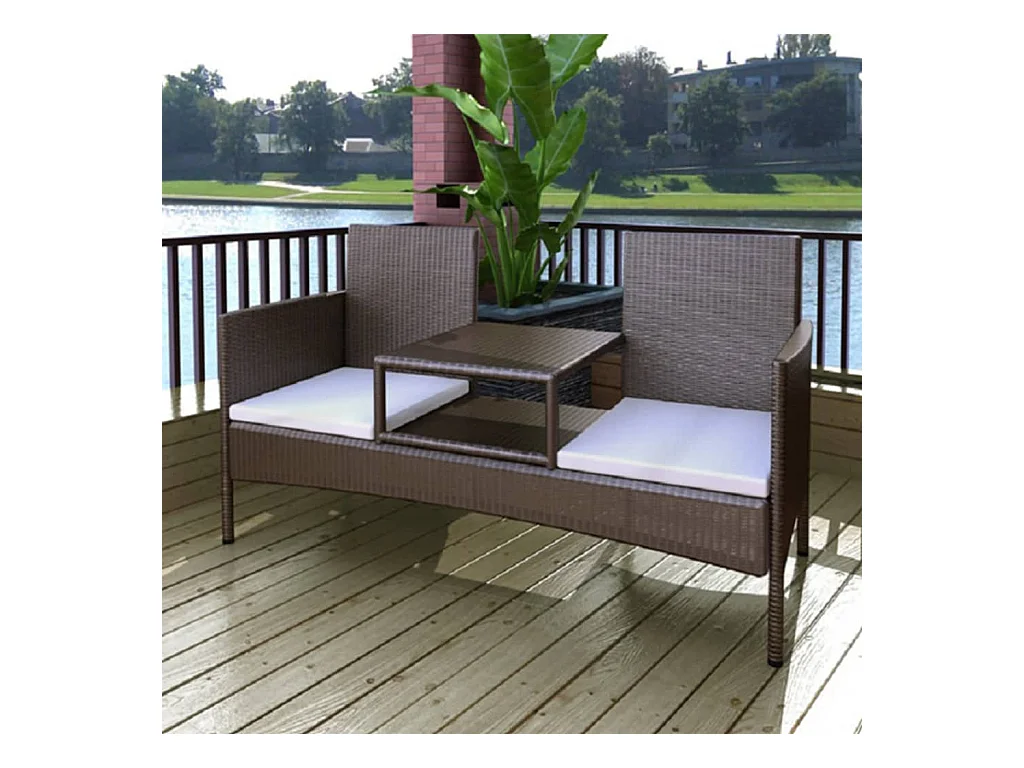 Banc de jardin à 2 places avec coussins marron PP rotin