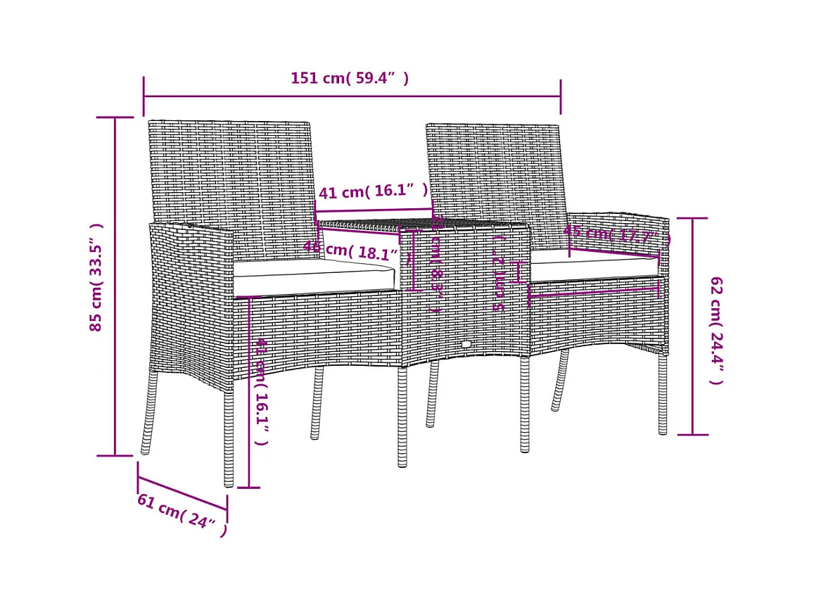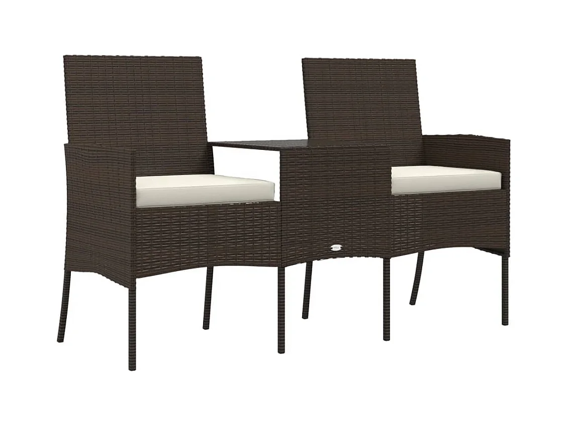 Canapé de jardin 2 places et table basse Résine tressée Marron