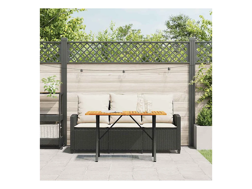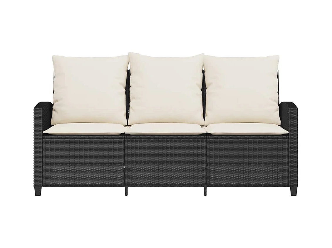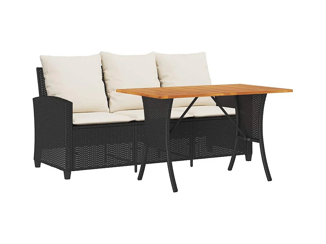 Canapé de jardin 3 places coussins et table noir résine tressée