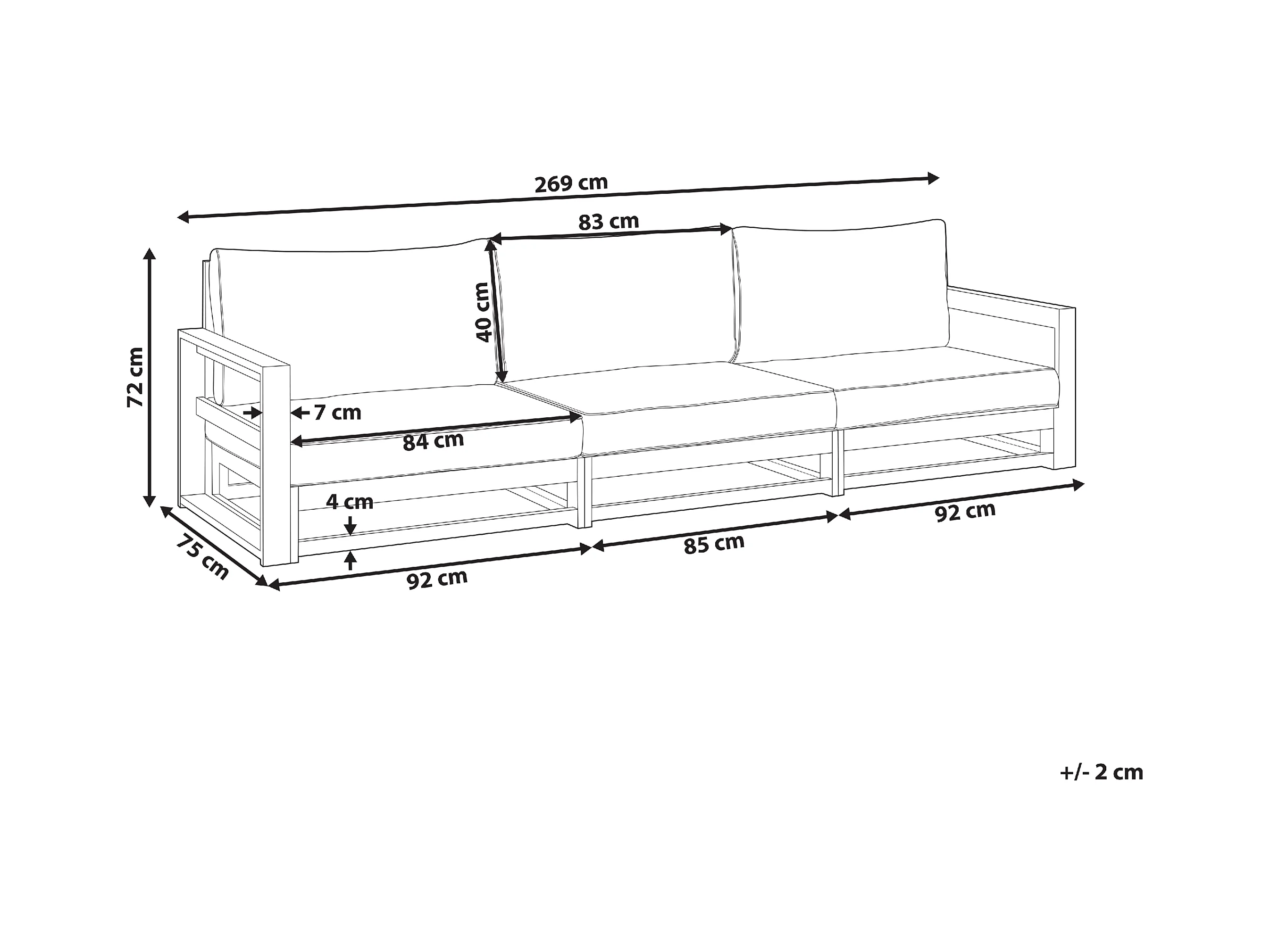 Canapé de jardin 3 places BARATTI Acacia Marron