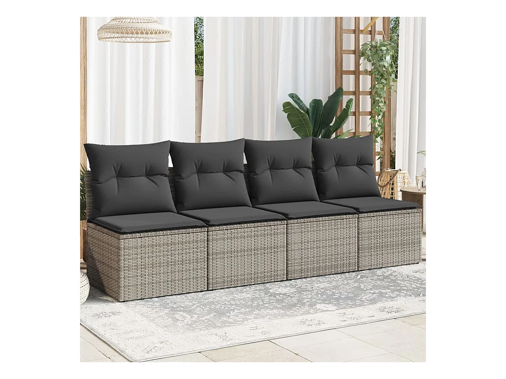Canapé de jardin sans accoudoirs coussins gris résine tressée REO88338