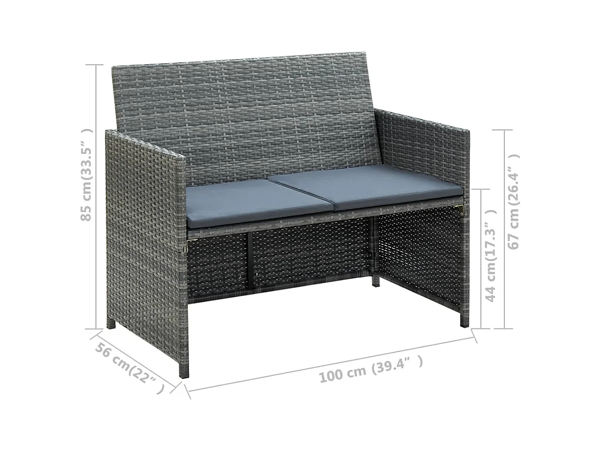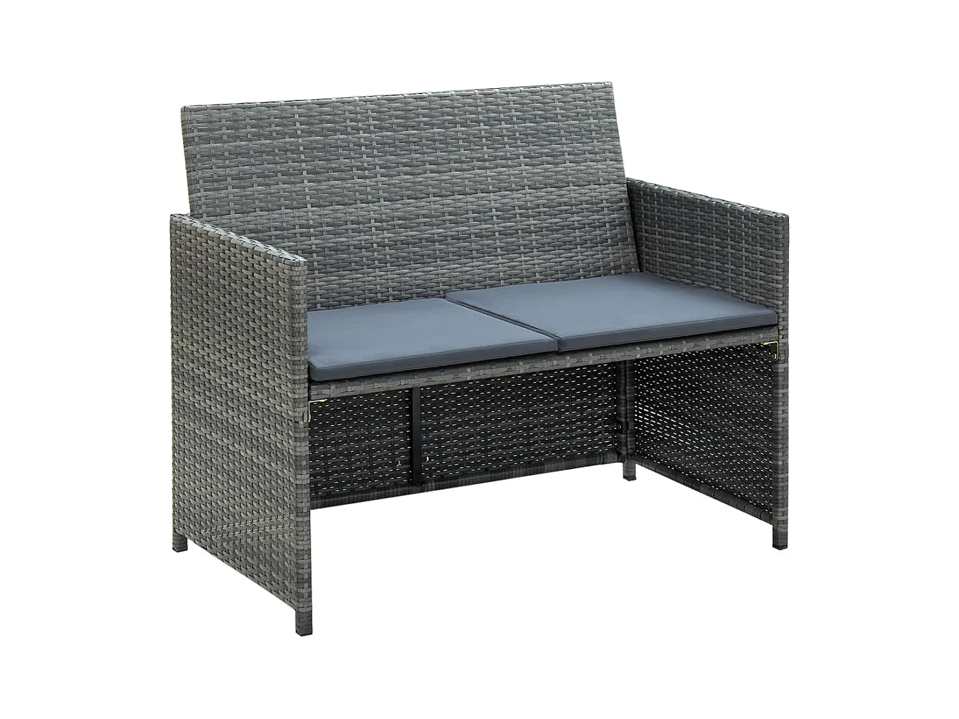 Canapé de jardin à 2 places avec coussins Gris Résine tressée