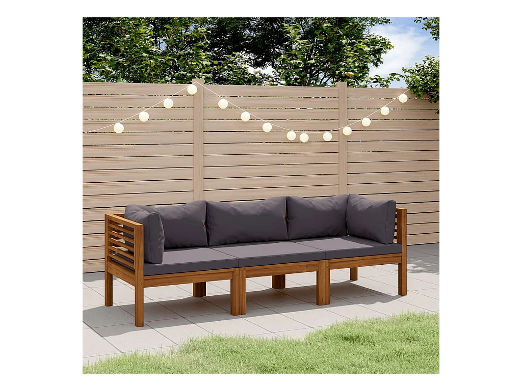 Canapé de jardin à 3 places avec coussin Bois d'acacia massif REO82050