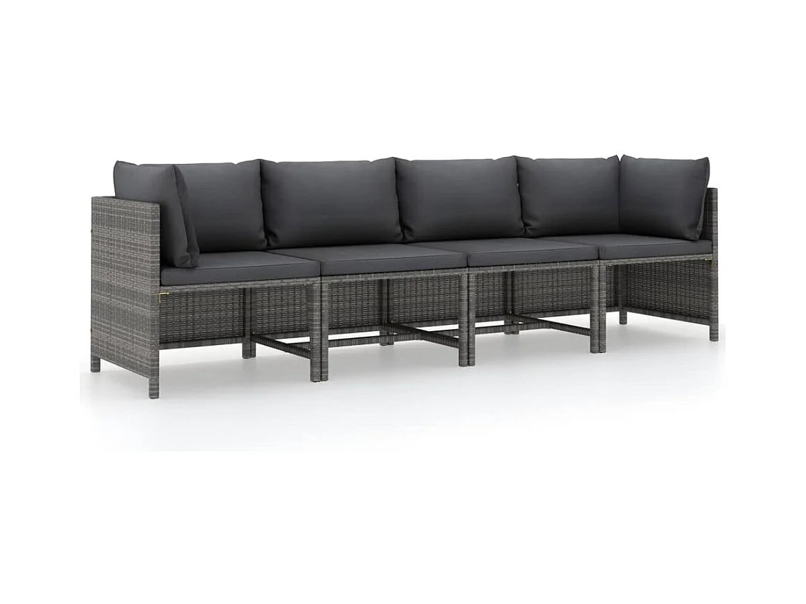 Canapé de jardin à 4 places avec coussins Gris Résine tressée FR98394