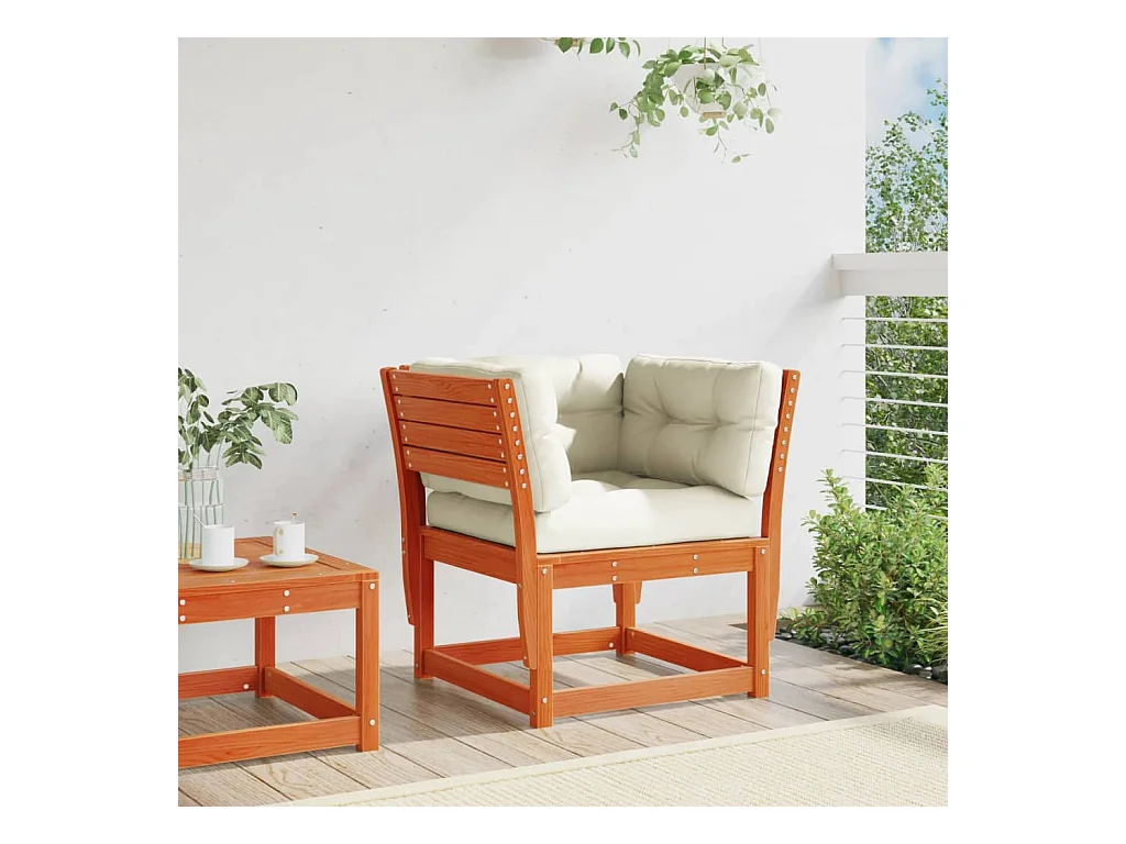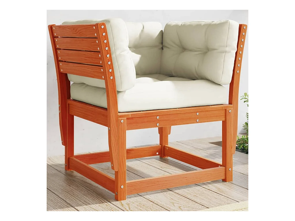 Canapé de jardin accoudoirs et coussins cire marron massif pin FR140401