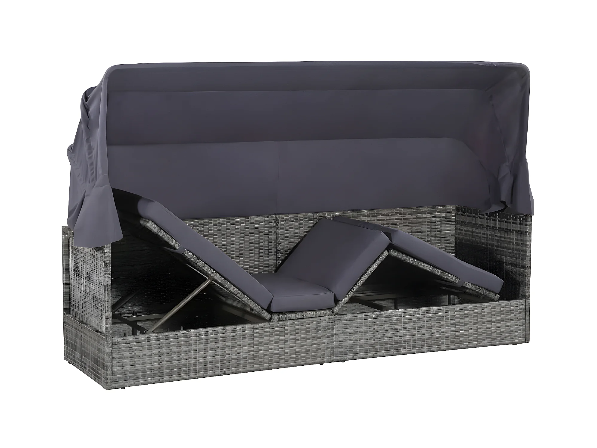 Canapé de jardin toit et coussins Gris Résine tressée PEWV74306