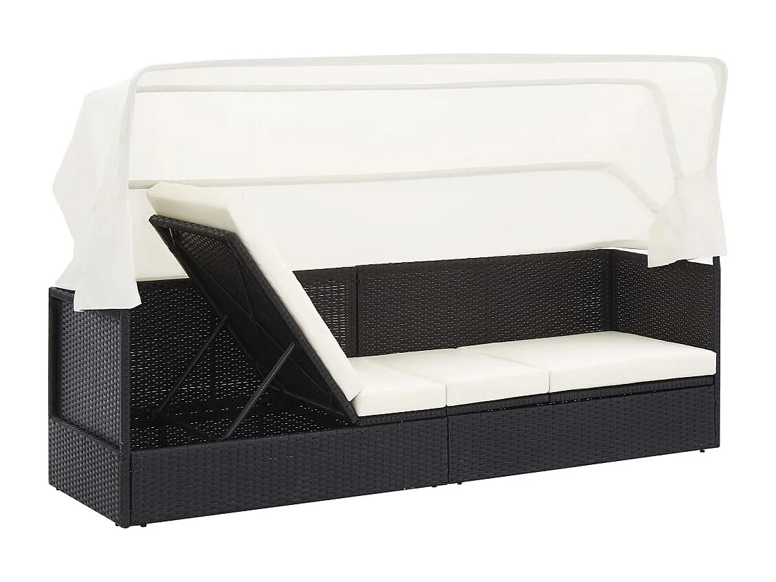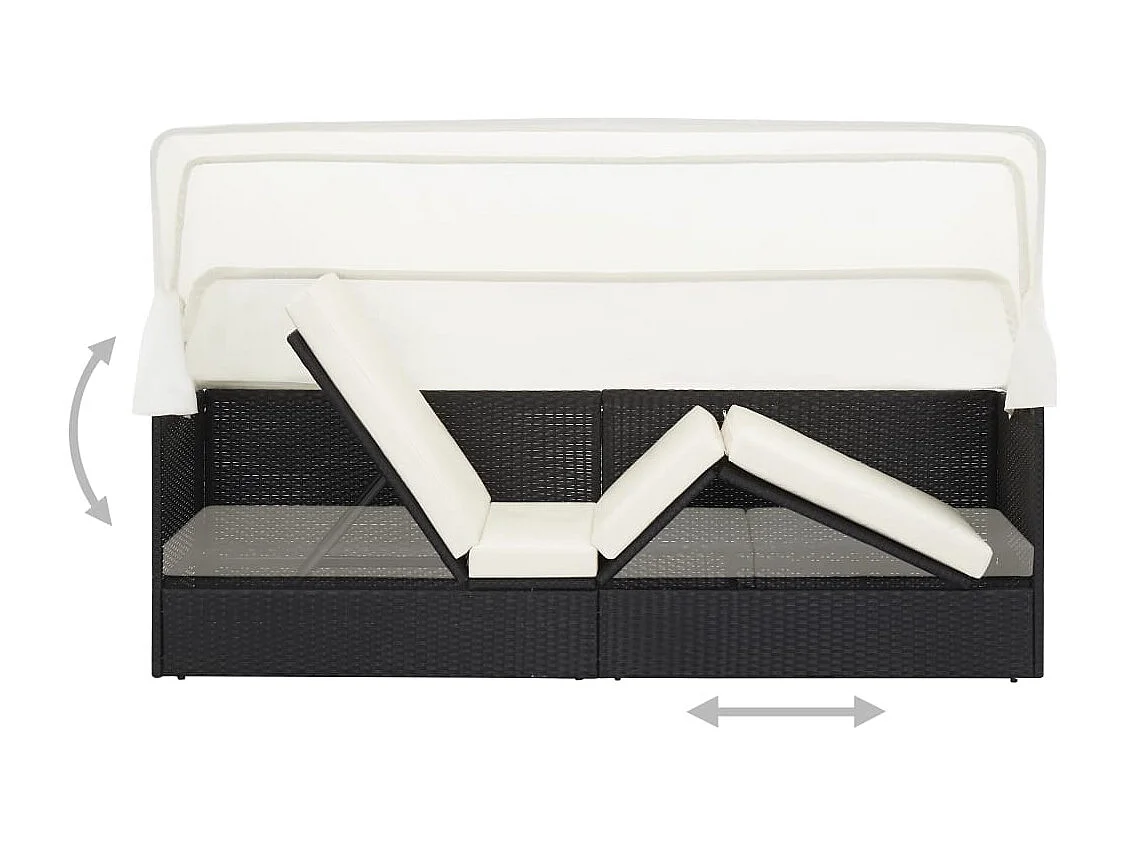 Canapé de jardin avec auvent Noir Résine tressée